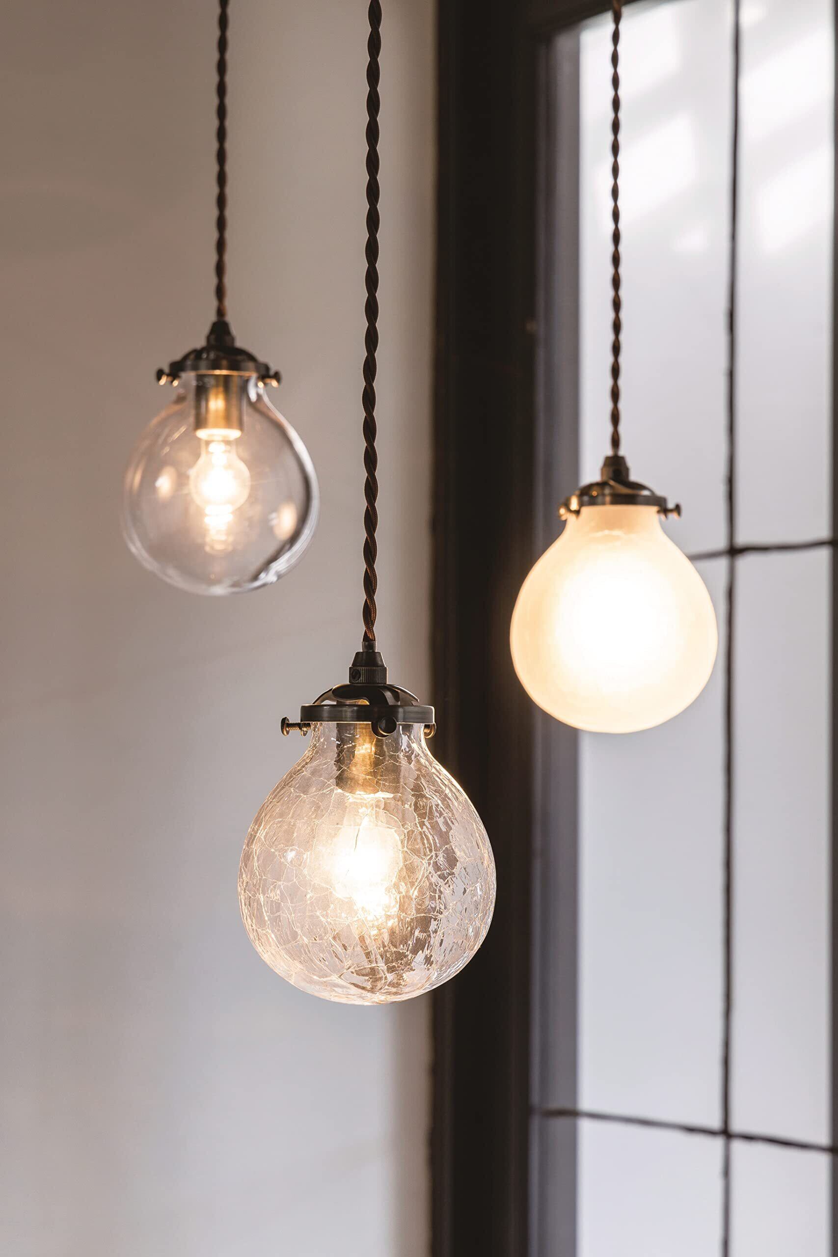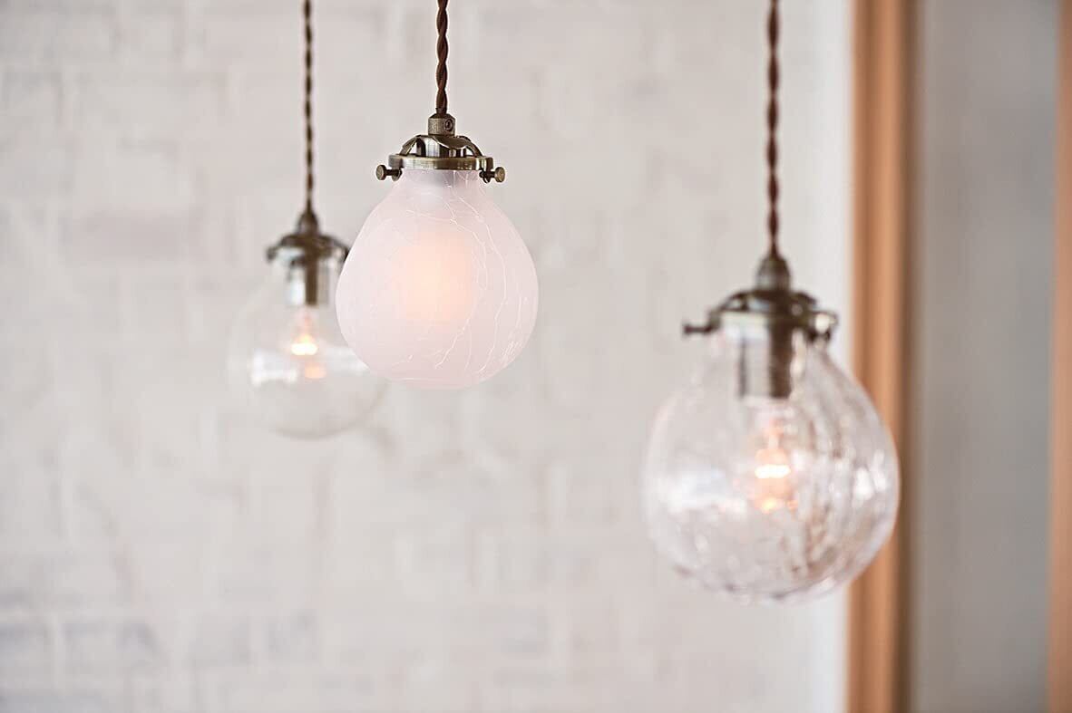 【使用シーン】 手のひらで包めるほどの小ぶりなガラスセードのペンダントライトは玄関やレストルームなどのコンパクトな空間にぴったりです。またキッチンやダイニングスペースで複数吊りすると、より華やかな空間演出をお楽しみいただけます。