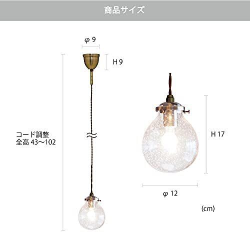 【商品の仕様】 素材:スチール、ガラス/サイズ: 横20cm、高さ16cm、奥行き20cm、シーリングカバー直径9×高さ9cm、コード調整 全高42〜101cm/点灯: 壁スイッチ(点灯→消灯) /重量: 1.0〜1.1kg