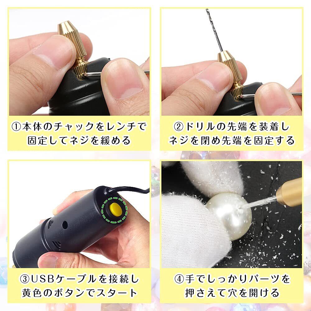 電動ピンバイス ハンドドリル ミニサイズ 予備針付き UVレジン プラモデル アクセサリー ハンドメイド