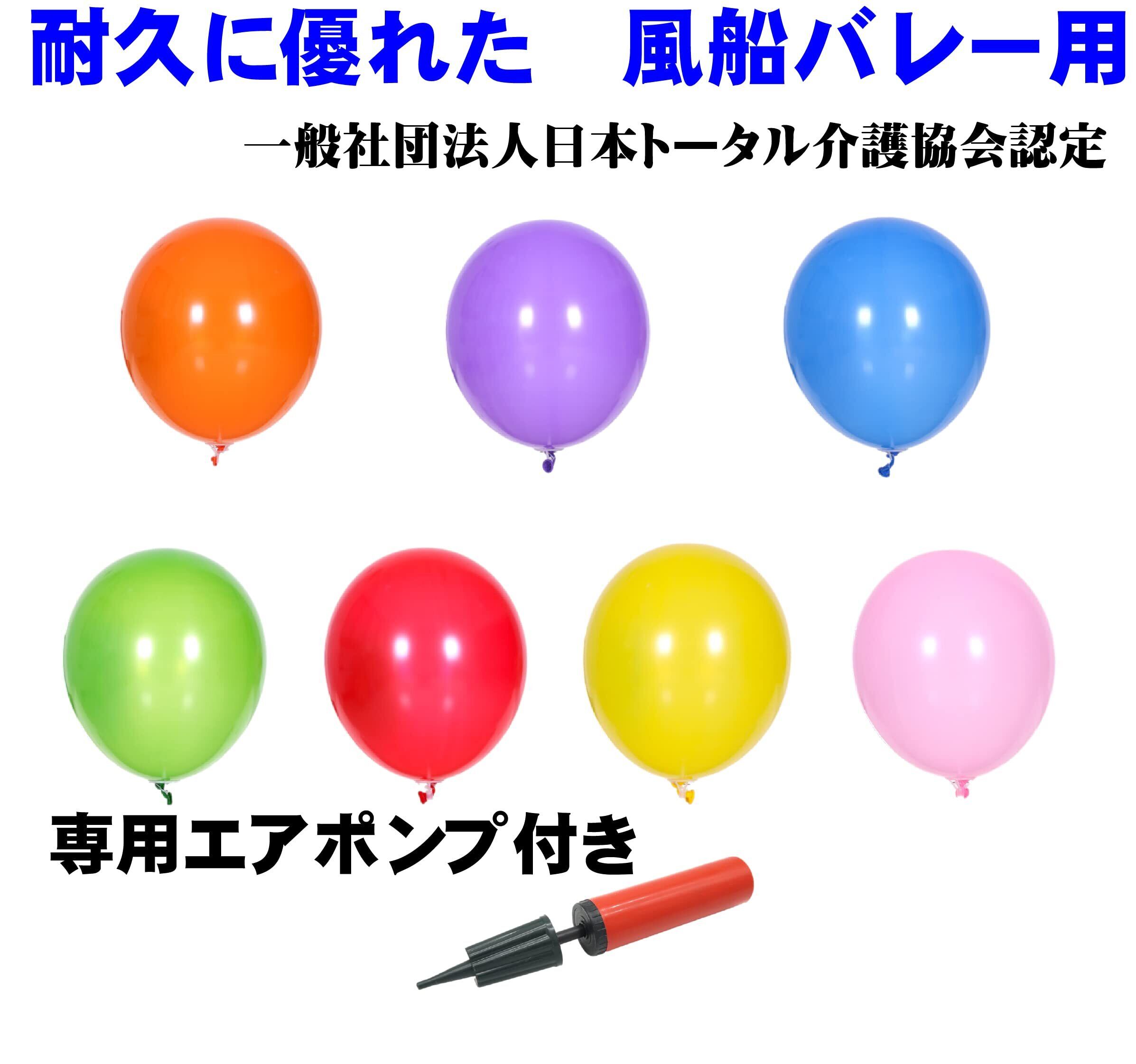 風船バレー 風船 デイサービス リクリエーション 高齢者運動 風船バレー用風船 日本トータル介護協会 認定風船 7色 専用空気入れのセット