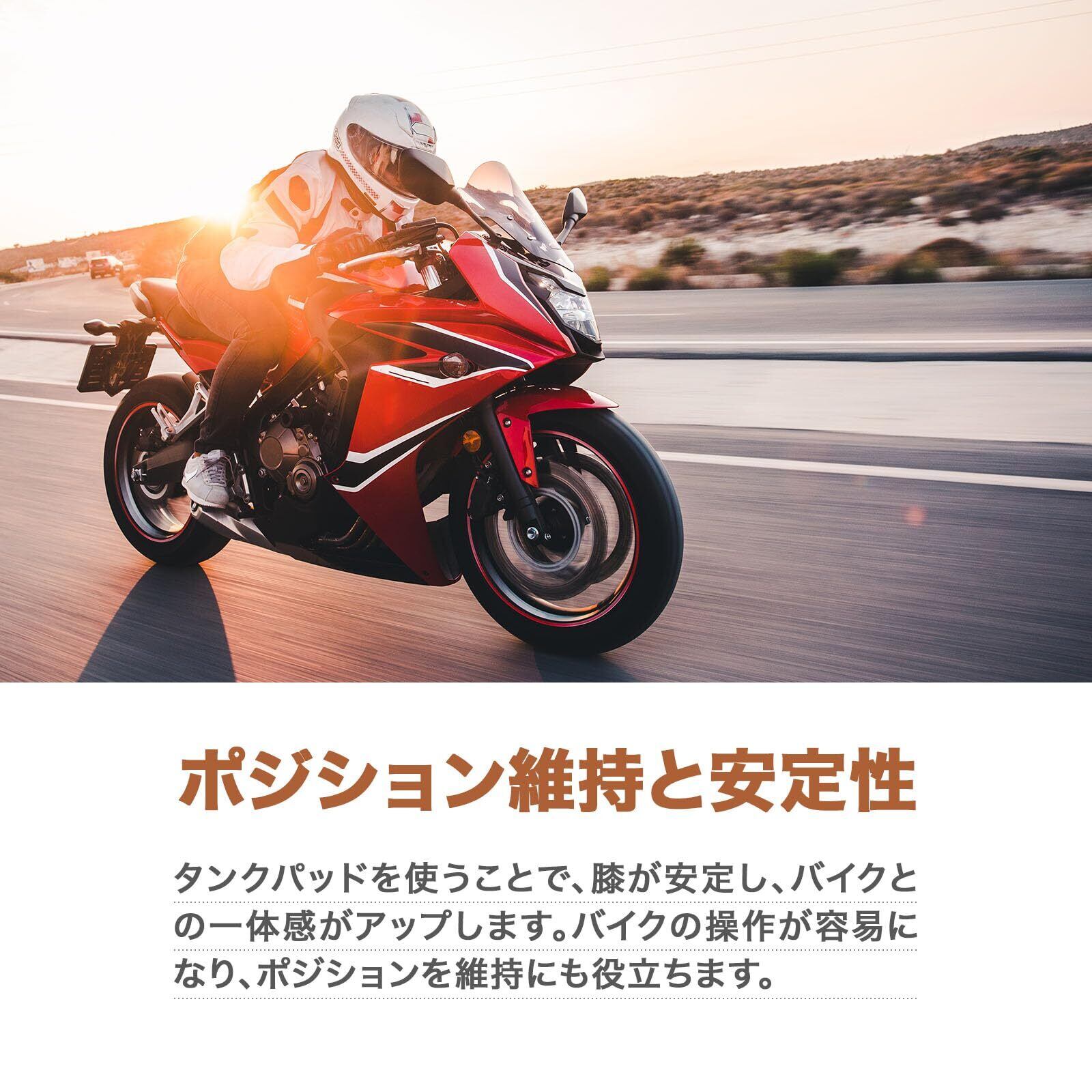 走行中の疲れを軽減:タンクパッドを使用することでバイクの長時間運転時の、膝や太ももにかかる負担の軽減に役立ちます。