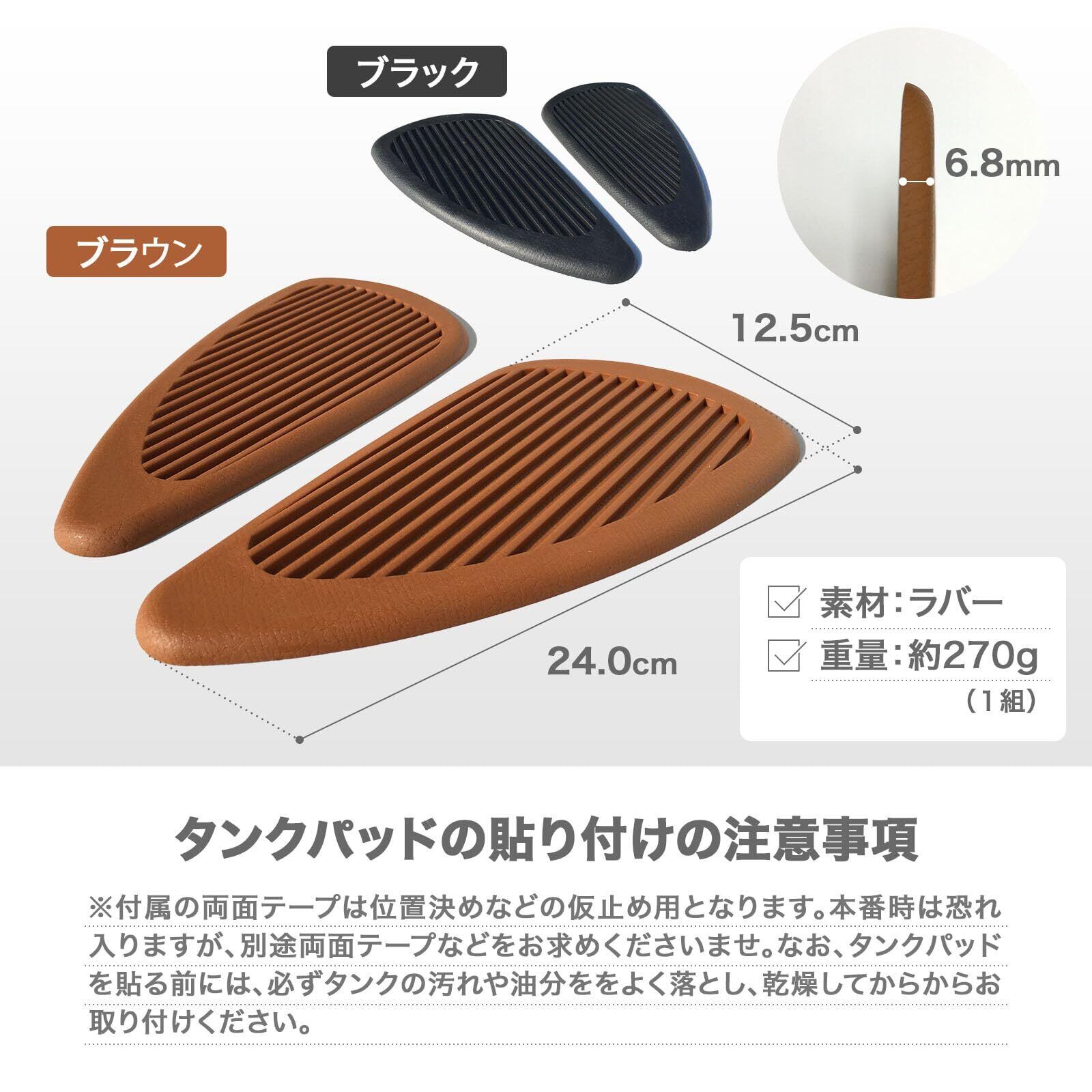 タンクパッドの貼り付けの注意事項:※付属の両面テープは位置決めなどの仮止め用となります。本番時は恐れ入りますが、別途両面テープなどをお求めくださいませ。なお、トラクション パッドを貼る前には、必ずタンクの汚れや油分ををよく落とし、乾燥してからからお取り付けください。