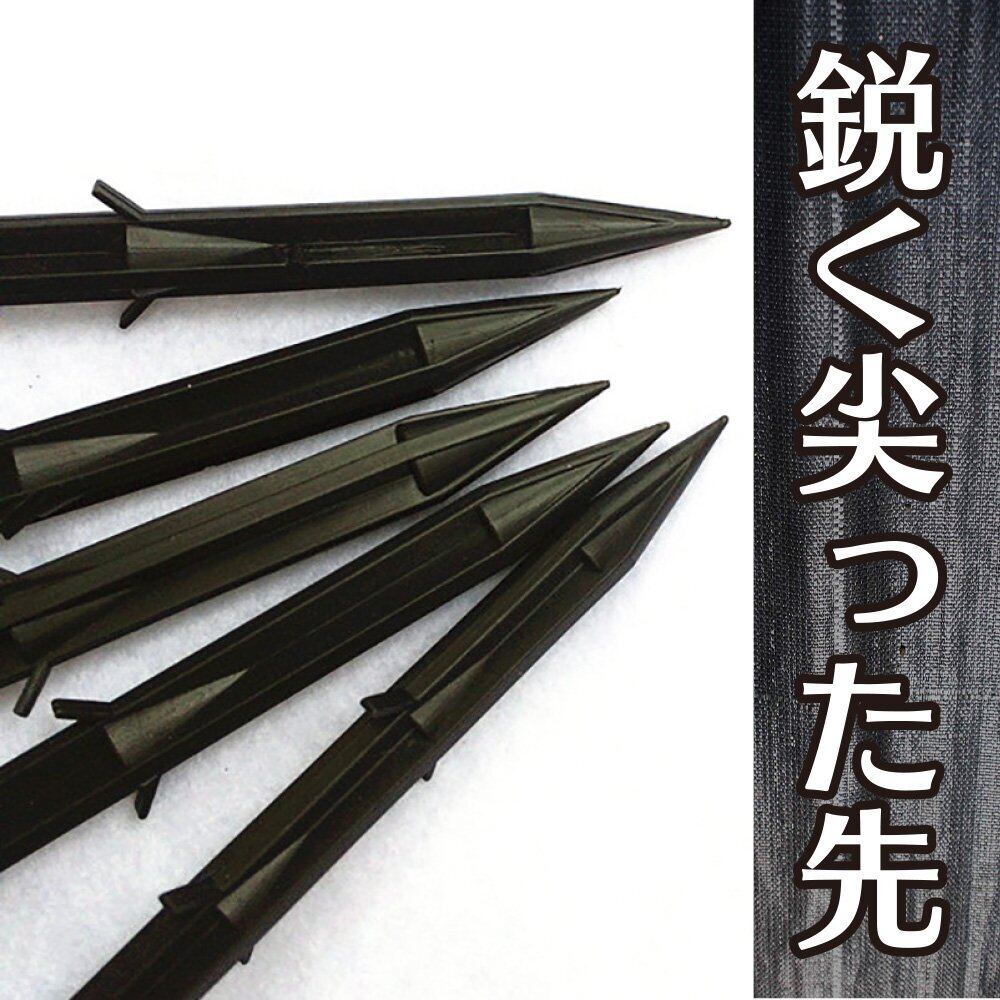 先端が鋭利なピンは先端が鋭利なピンは、ぼうそうシートにスムーズに刺さるのでシートの破損が小さくてすみます。破れの原因を軽減でき、定期的な差し直しが無くなるのでメンテナンスが楽チン、防草シートにスムーズに刺さるのでシートの破損が小さくてすみます。破れの原因を軽減でき、定期的な差し直しが無くなるのでメンテナンスが楽チン