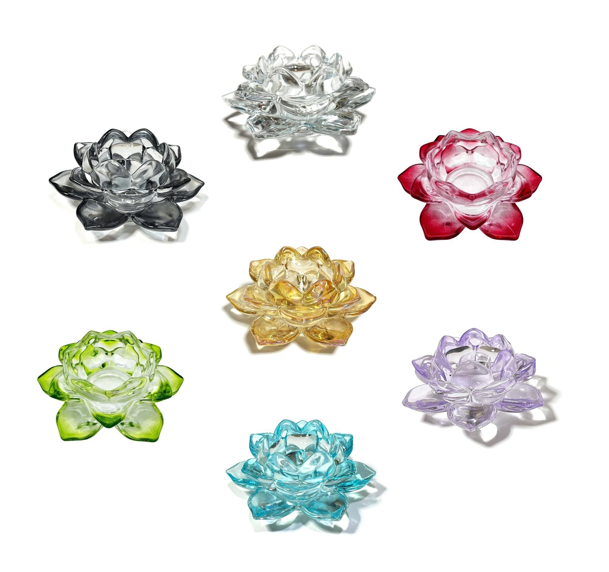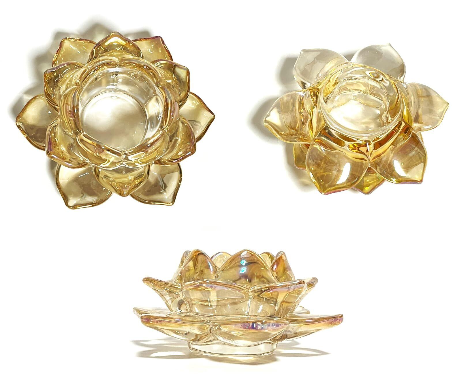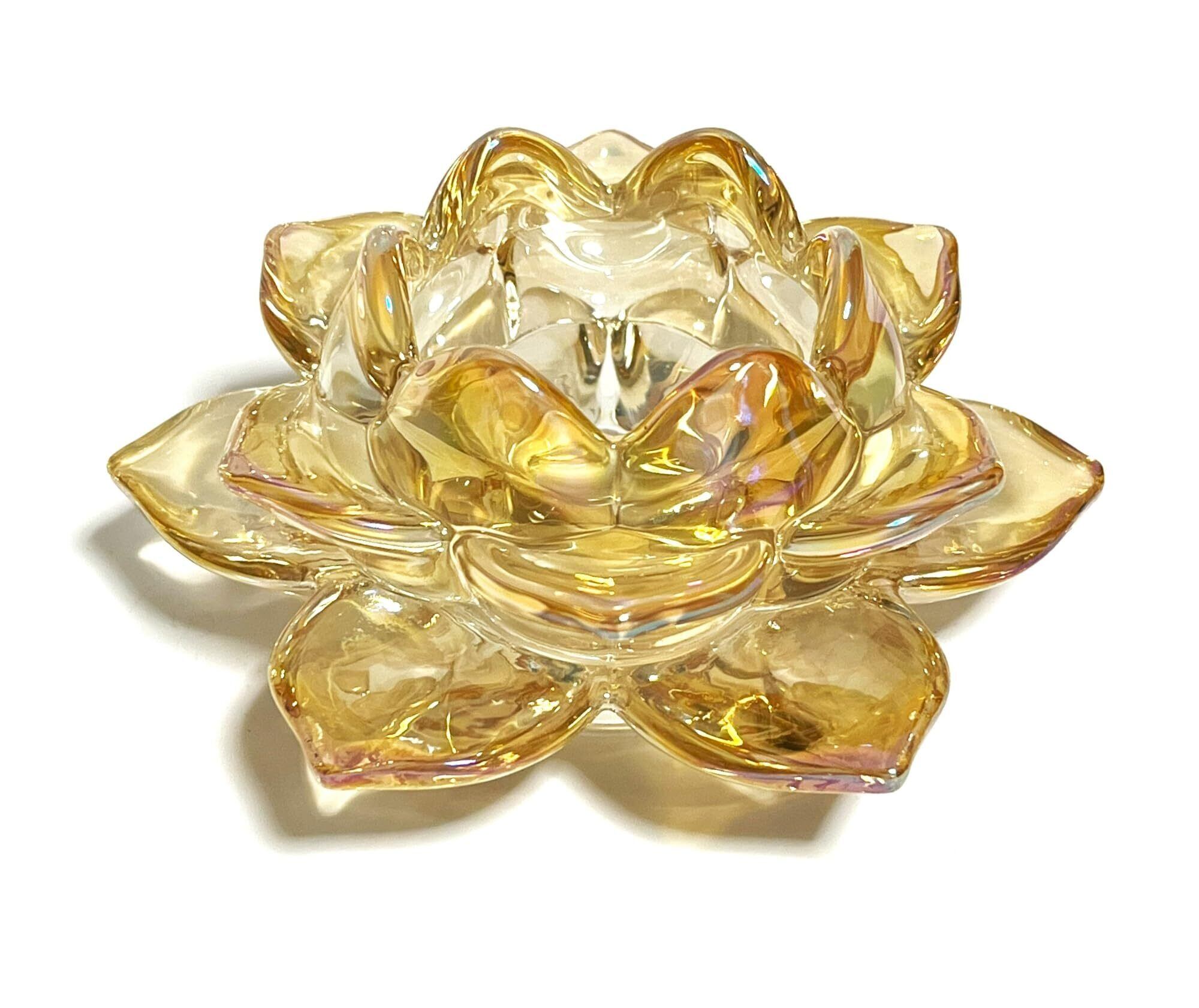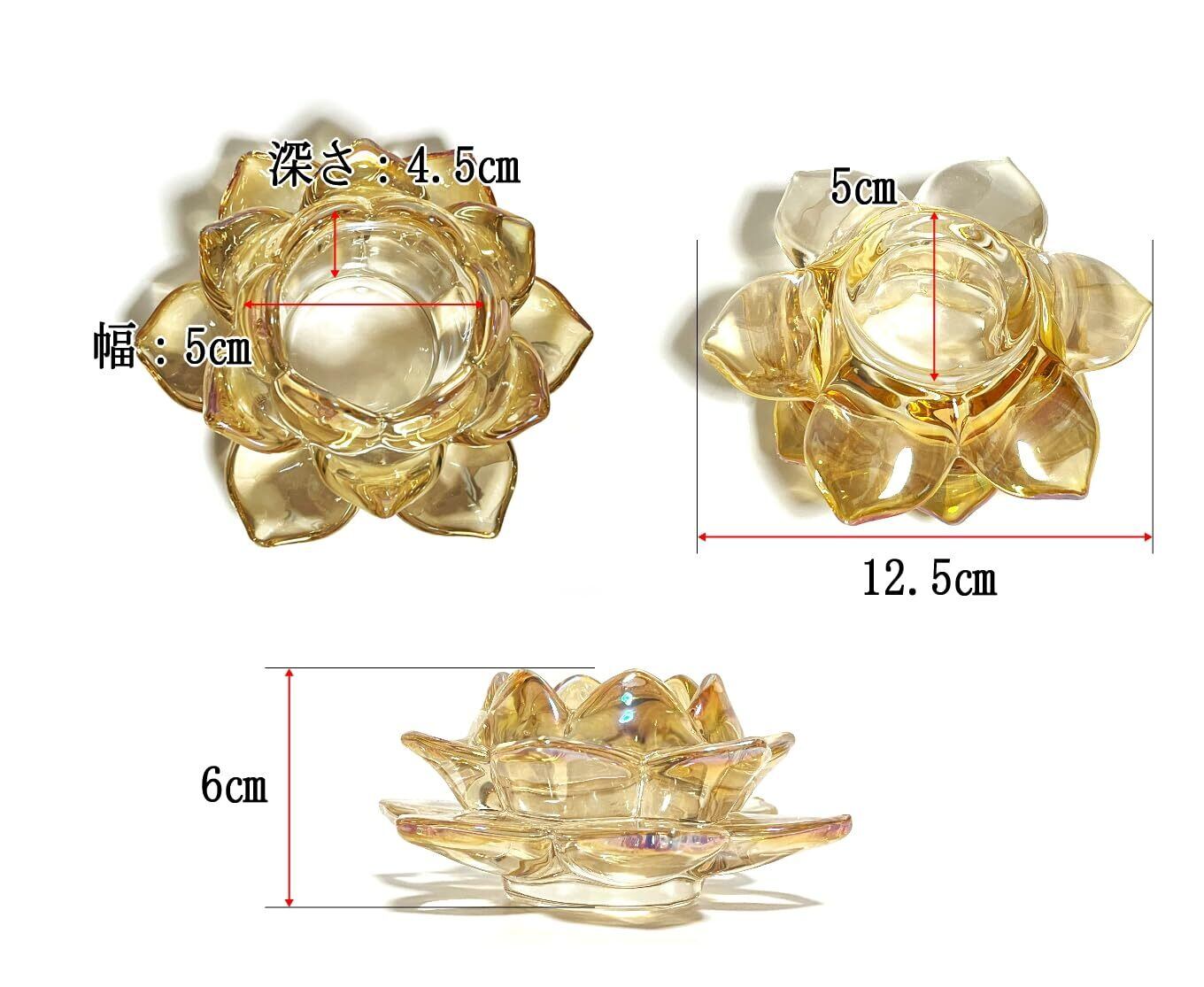 キャンドルスタンド 蓮の花 ガラス製 クリスタル カラー キャンドルホルダー 燭台 ろうそく立て (琥珀)