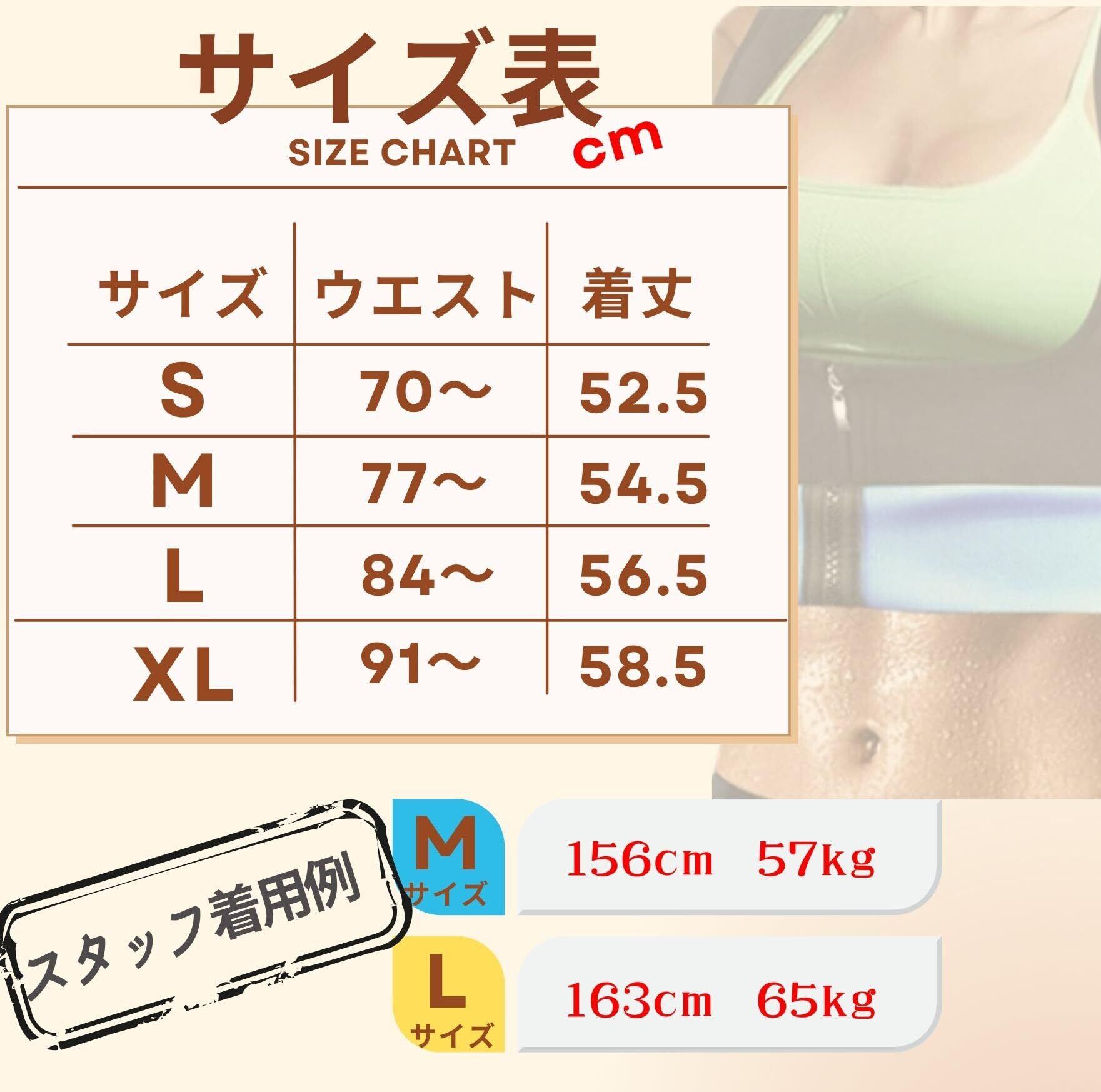サイズ S:ウエスト70-76 着丈52.5 M:ウエスト77-83 着丈54.5 L:ウエスト84-90 着丈56.5 XL:ウエスト91-97 着丈58.5