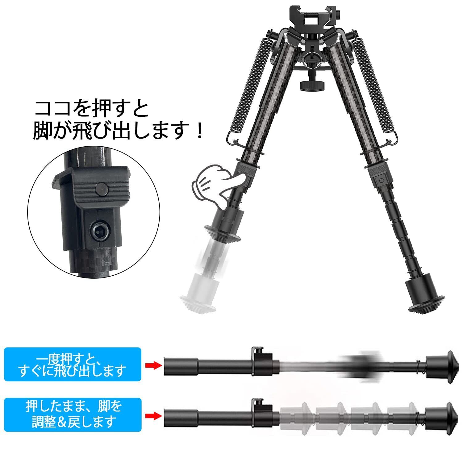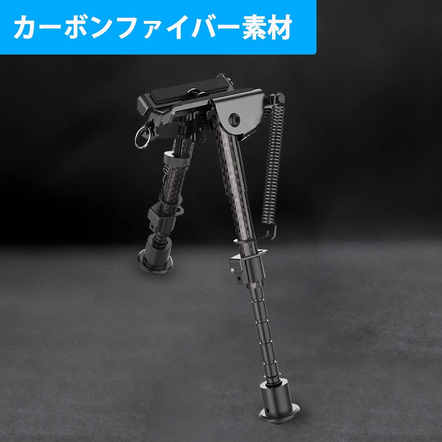 【見た目はカッコイイ!】バイポッド全体は100%カーボンファイバーで作られております。高純度の素材であり、超軽量を実現する同時、驚いた耐久性を持ちます。高級感に溢れたブラック色で、ご愛銃に装着すると、もっとカッコよくなれます!