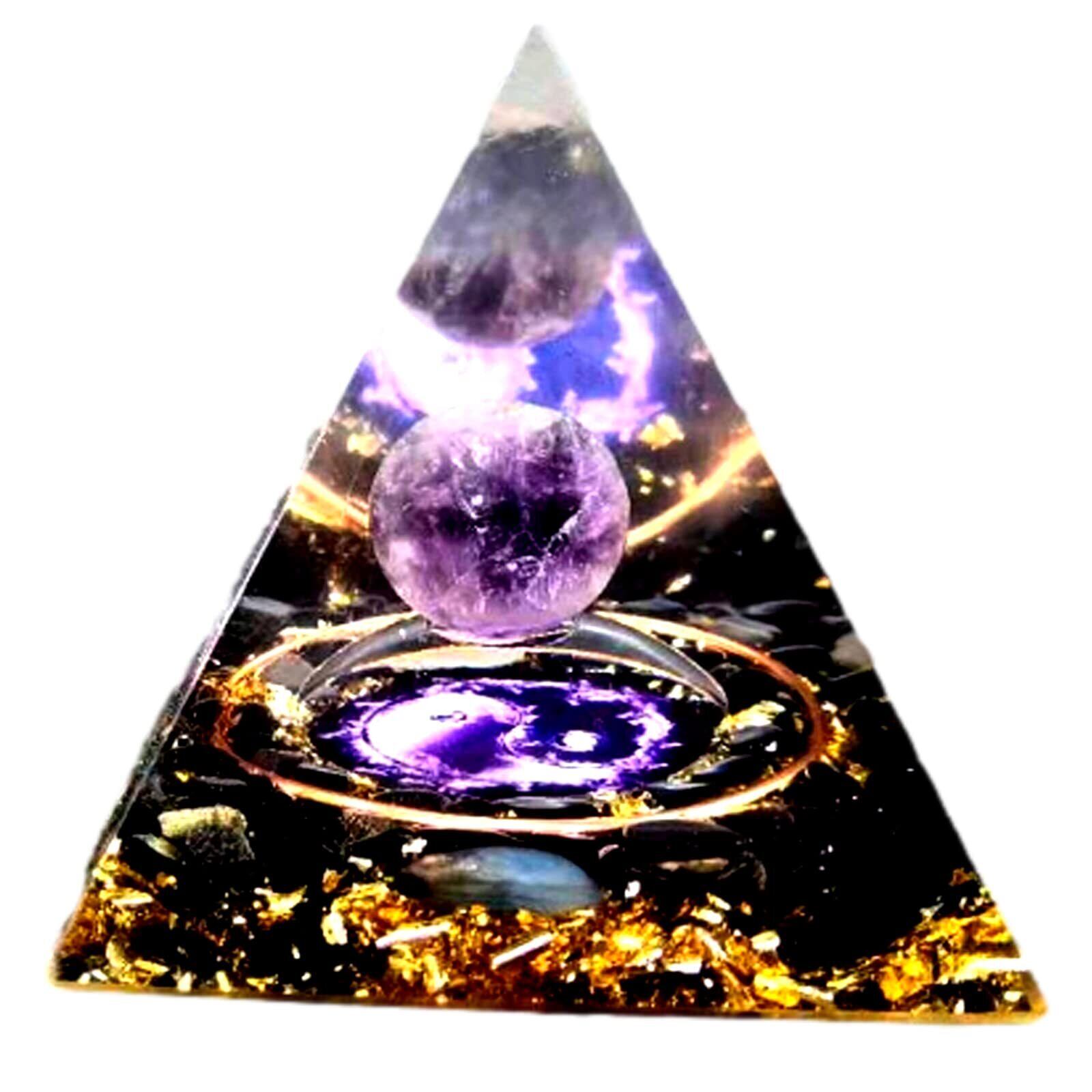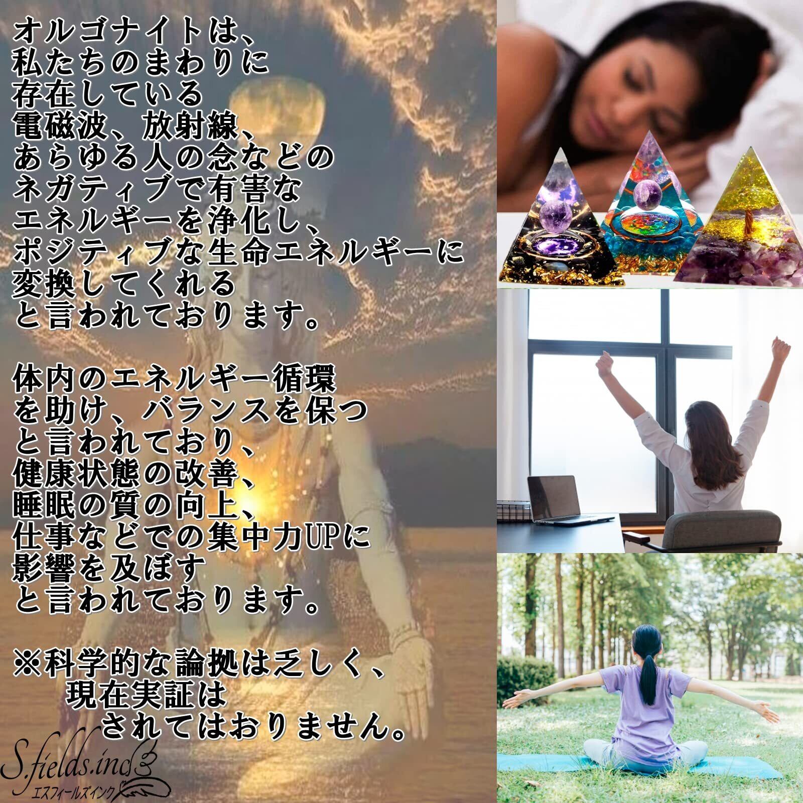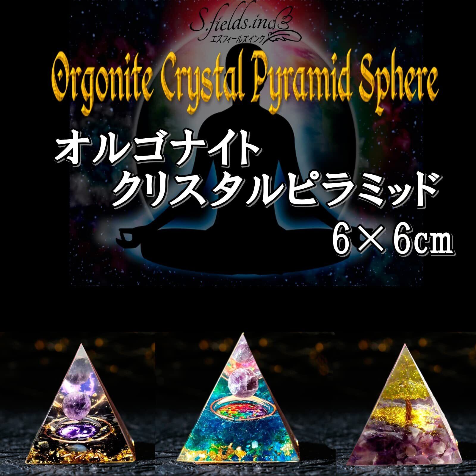 S.fields.inc クリスタル ピラミッド オルゴナイト パープル パワーストーン 水晶 6×6cm (インヤン)