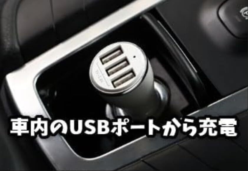 移動中の車内やスマホの充電に使ってるACアダプターでもUSBポートがあれば充電が可能です