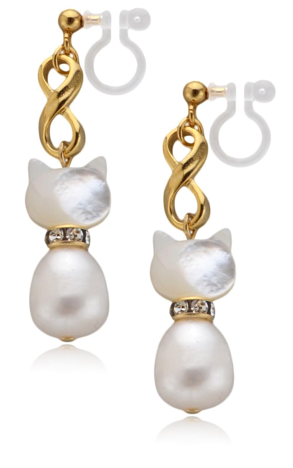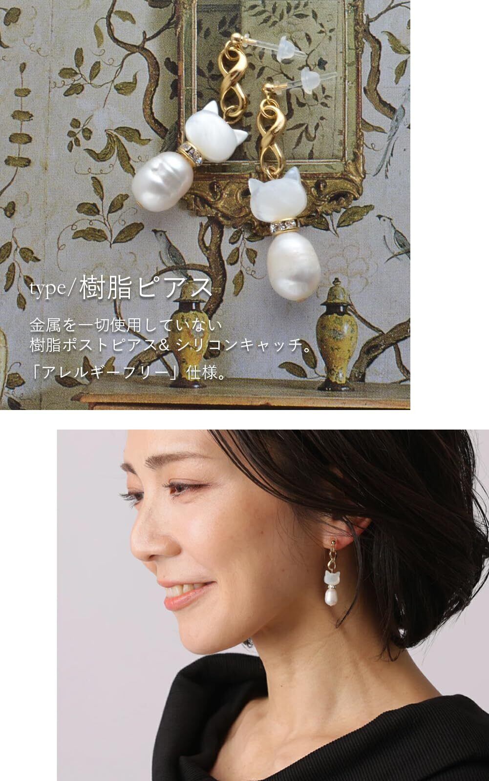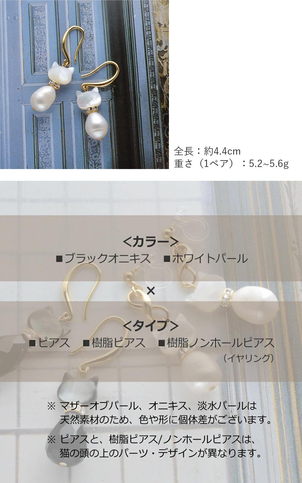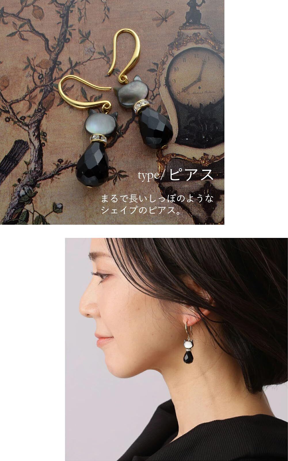 [R-days代官山] マザーオブパール キャットモチーフ ピアス ノンホールピアス レディース 黒猫 白猫 日本製