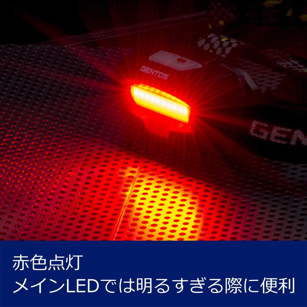 明るさ:白色(High/400ルーメン、Mid/100ルーメン、Eco/20ルーメン)、赤色(High/30ルーメン、Eco/10ルーメン)