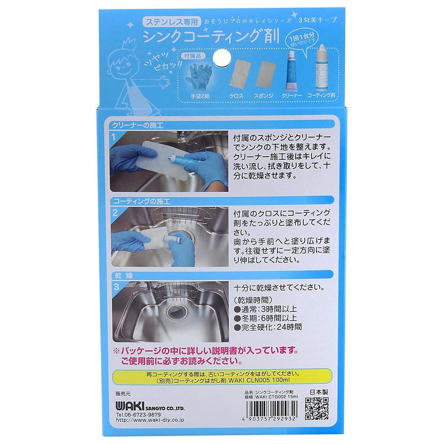 和気産業(Waki) 防汚効果 撥水 水垢汚れをピカピカに 3年美キープ ステンレスシンク用コーティング剤 15ml CTG002