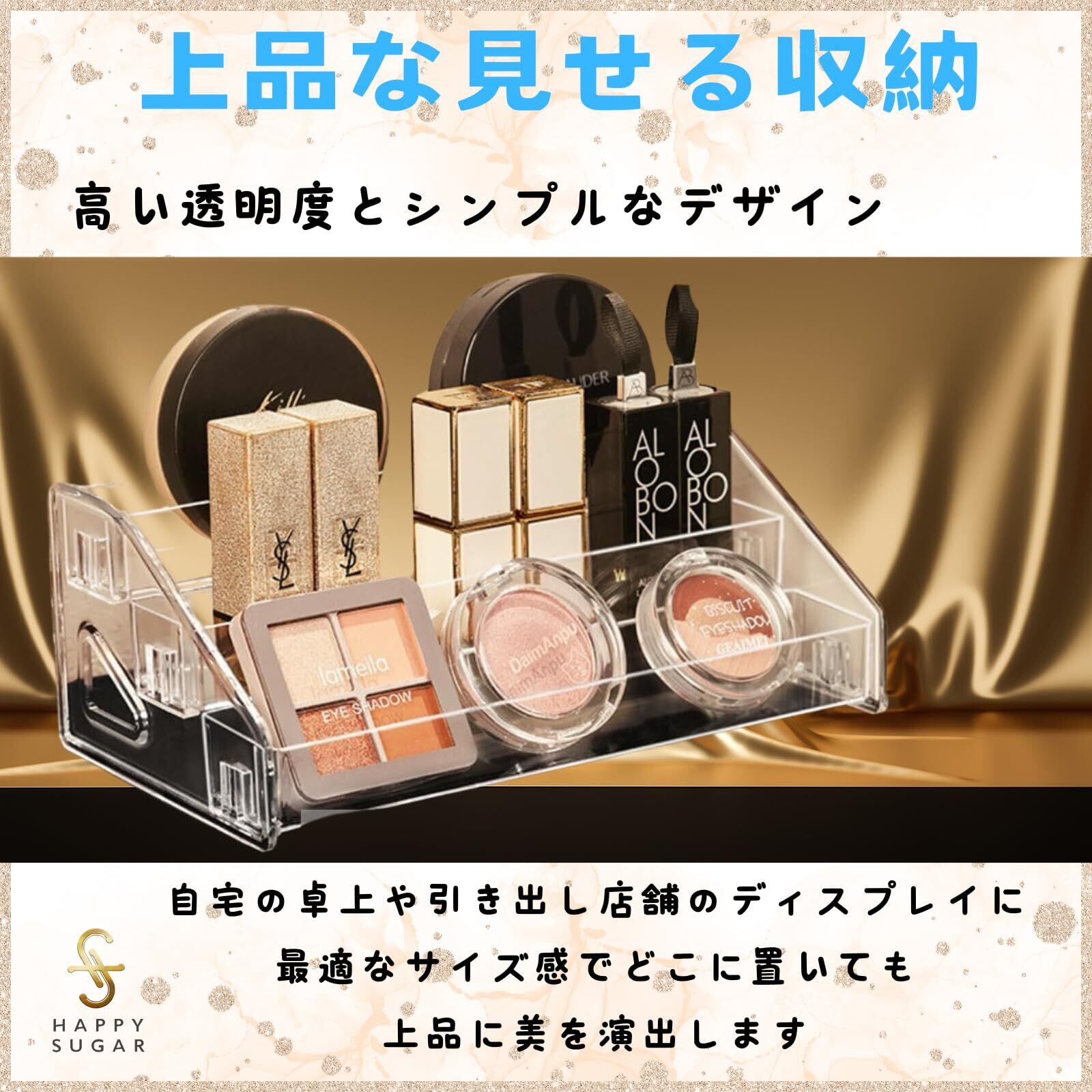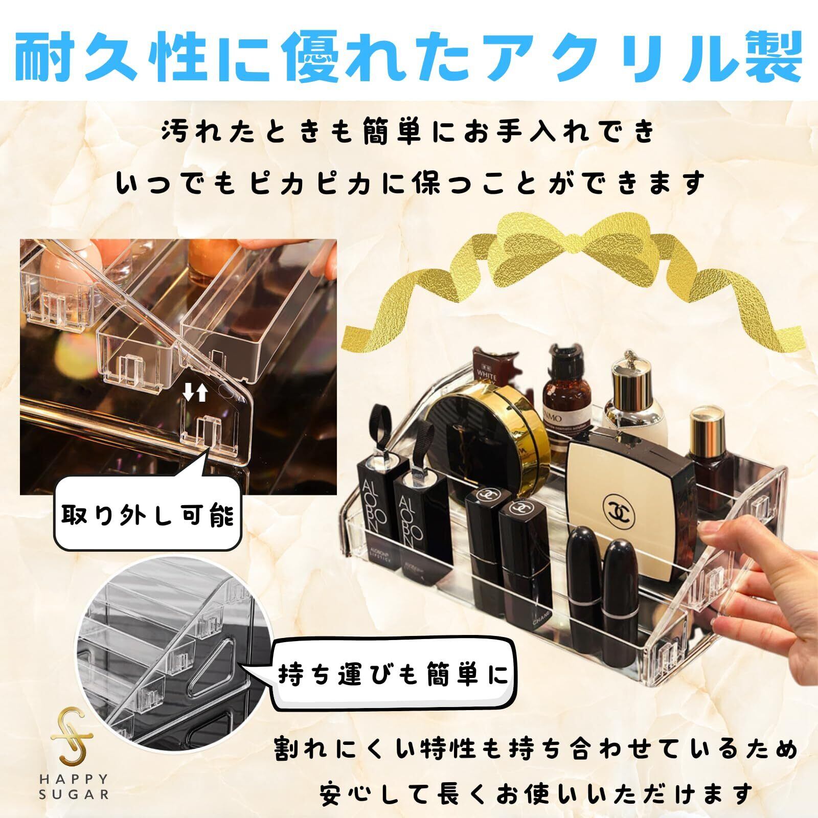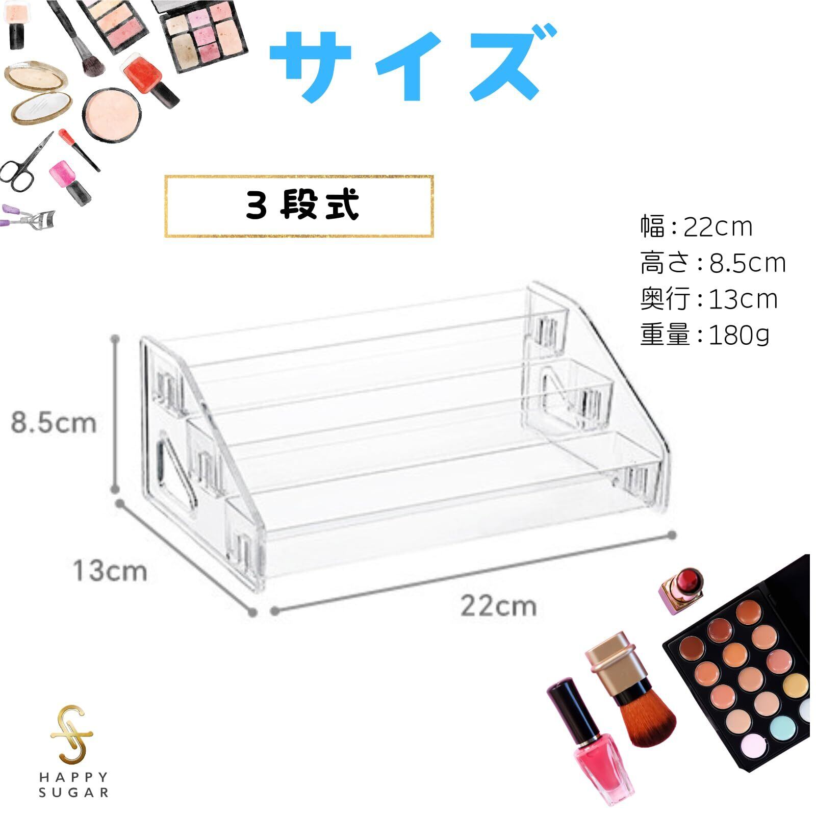 HAPPY SUGAR メイク収納 コスメ収納 メイクボックス 化粧品収納 ネイルケース アクリルスタンド クリアケース 仕切り アイシャドウ 3段式