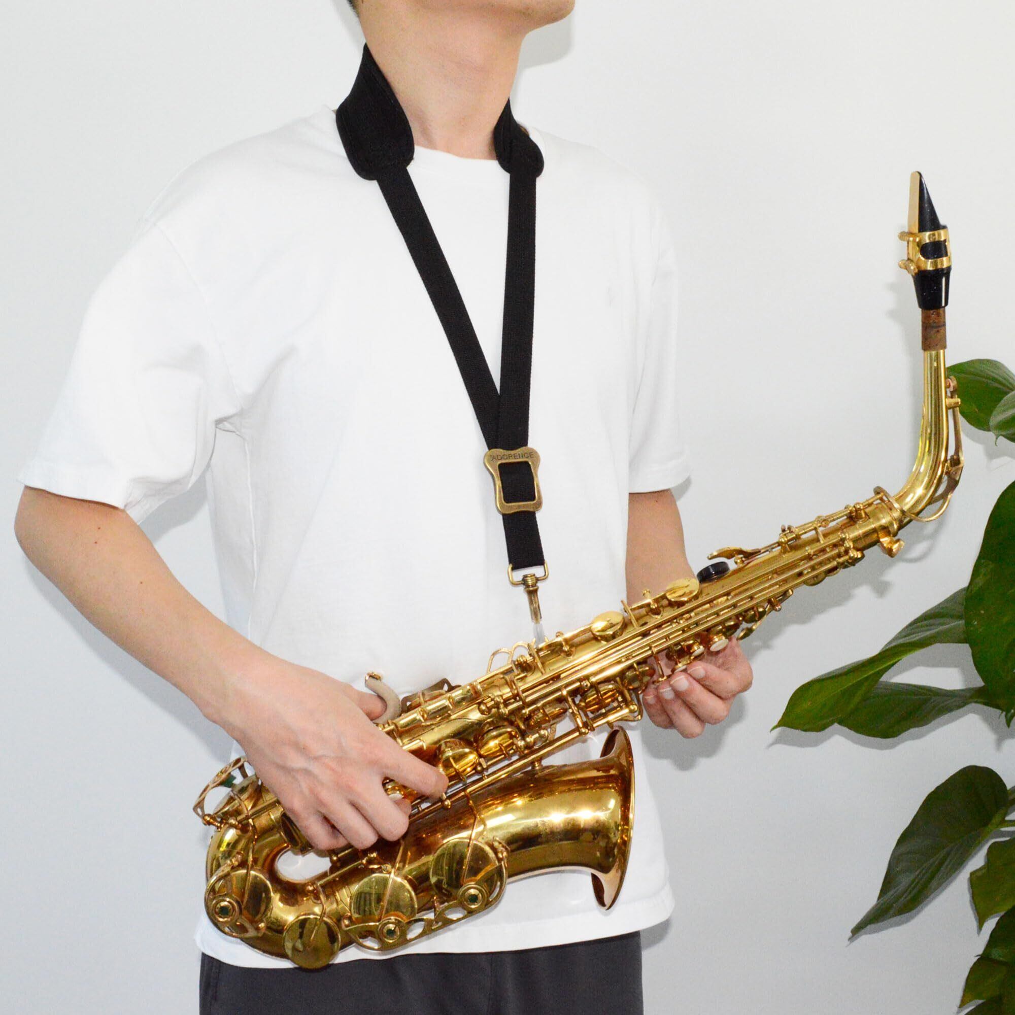 [adorence] サックスストラップ アルト・テナー兼用 ネックパッド搭載 調節自在 メタルスイベルスナップ - H11