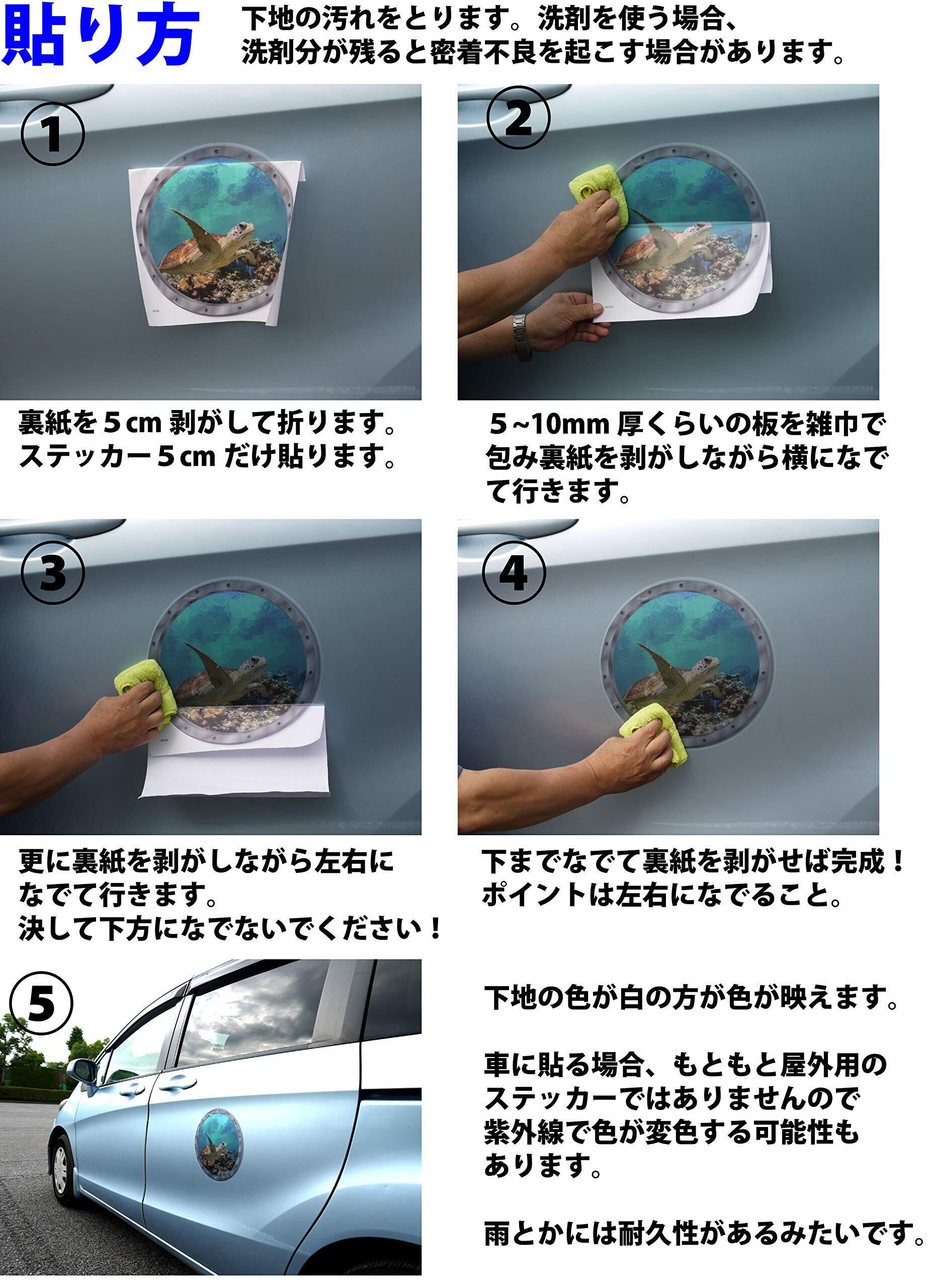 裏紙を剥がしながら圧着して貼ります。わりと強めの粘着ステッカーです。下地の色が白い部分に貼ると色合いが鮮やかに仕上がります。濃い色の下地に貼ると色も暗い感じになります。