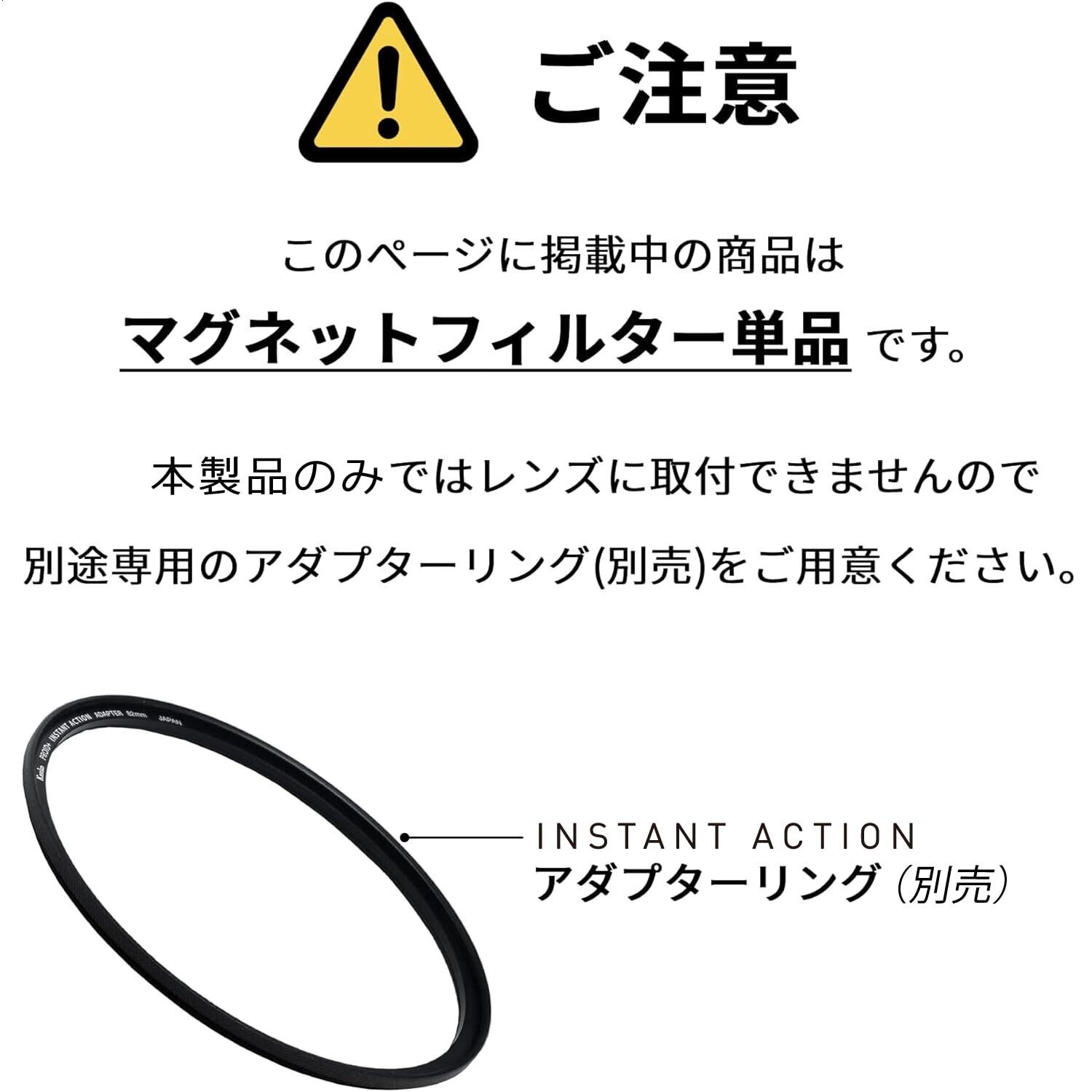 ※本製品はフィルター単体ではレンズに取り付けることができません。フィルターの使用には別売のマグネットアダプターリングが必要です。