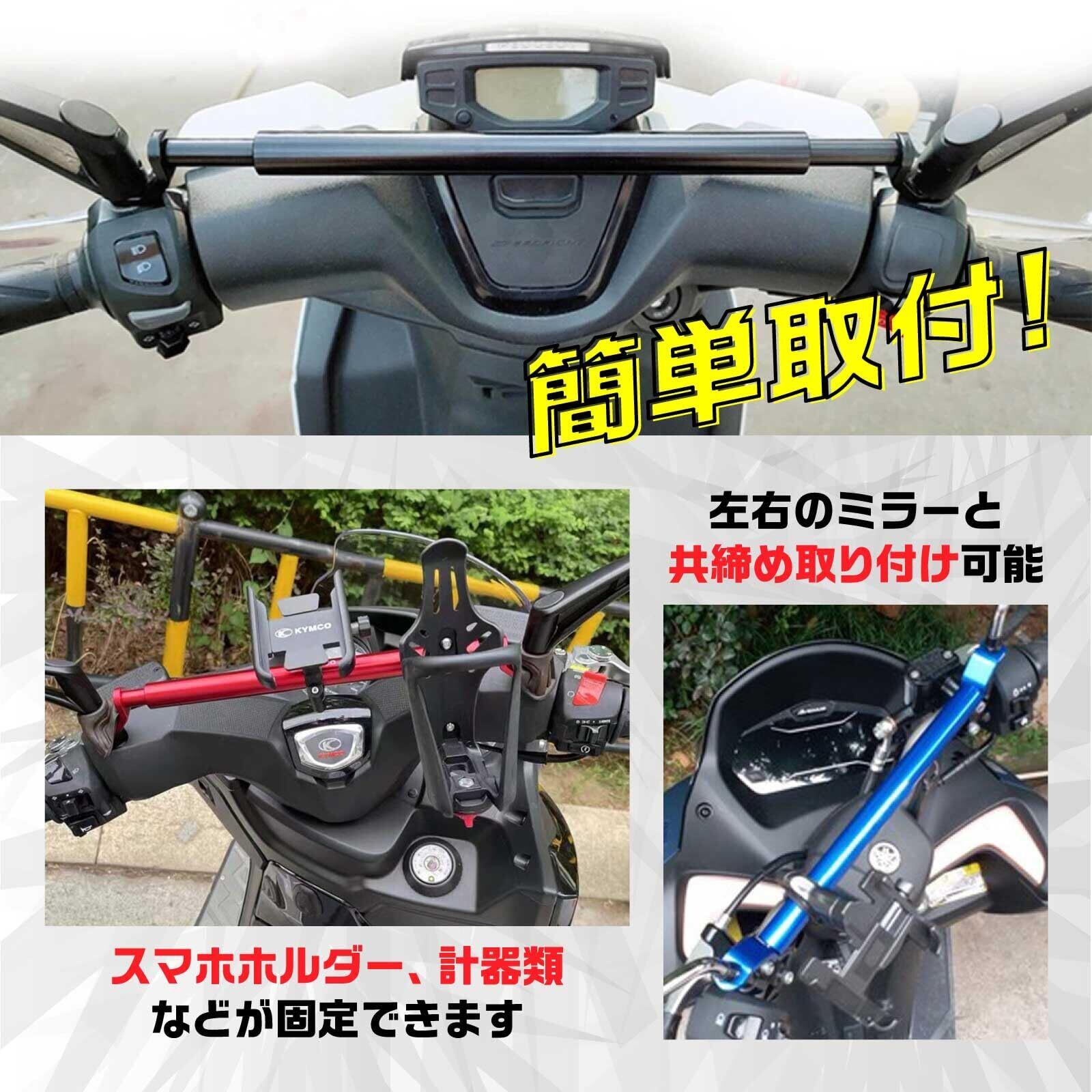 【 簡単取り付け】左右のミラーと共締めするだけで簡単に取り付け可能です。バイクをスタイリッシュにアップグレードしてドレスアップできるマルチバーになります。