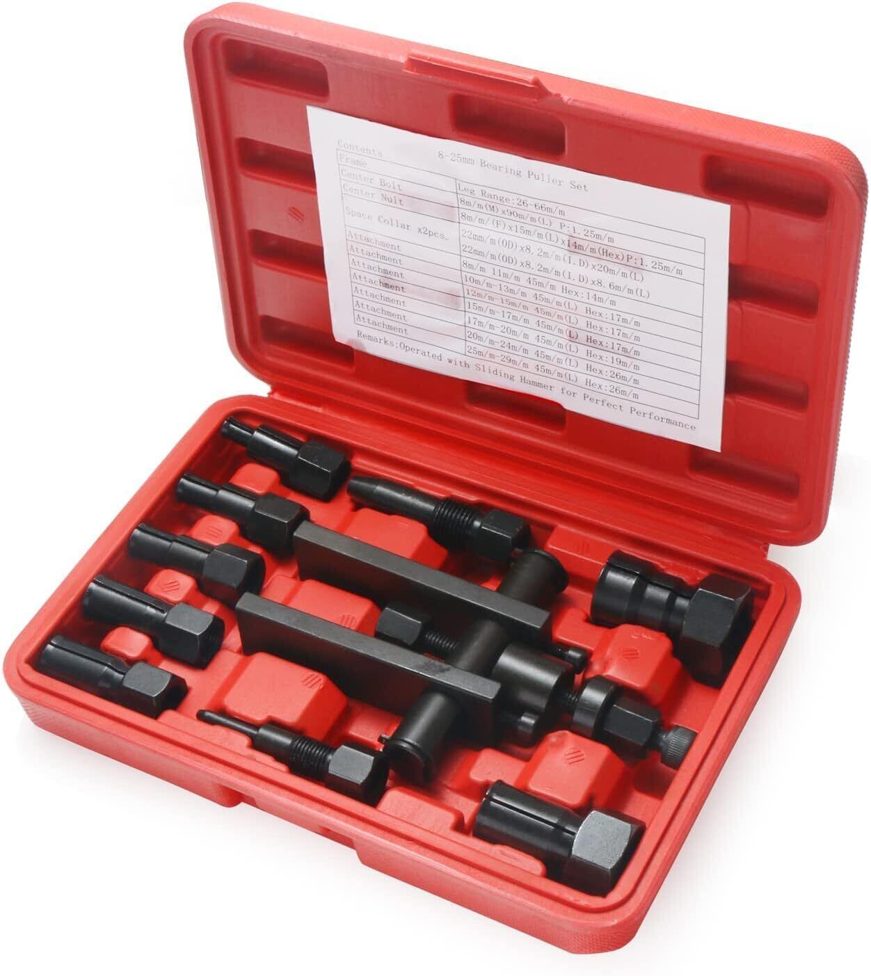 【在庫処分】Quitoka パイロットベアリングプーラー工具 セット 8-29mm 内掛け対応 10ピース プーラー 工具 バイク用 ギヤプーラー 2本爪 ベアリングリムーバー ツールケース付き | gsmshop