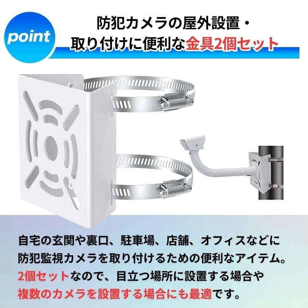 【防犯カメラを簡単に設置する金具セット】防犯カメラの屋外設置、取り付けに便利な金具セットです。自宅の玄関や裏口、駐車場、店舗、オフィスなどに防犯・監視カメラを取り付けるための便利なアイテムです。2個セットなので、目立つ場所に設置する場合や複数のカメラを設置する場合にも最適です。