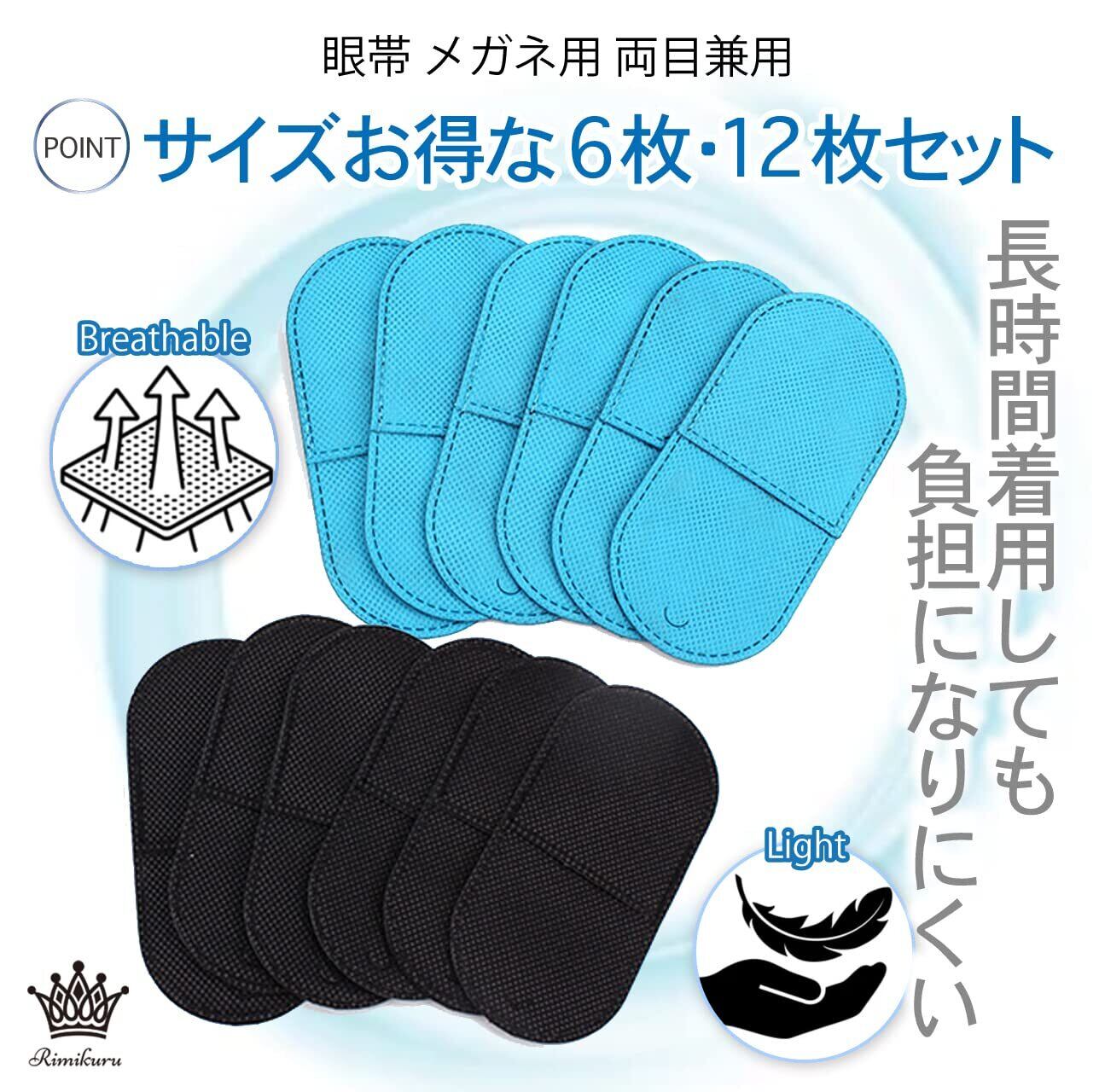 豊富なバリエーション:こちらの眼帯 メガネ用は黒とブルーの2色をそれぞれSサイズ、Mサイズご用意いたしました。また、6枚入と12枚入の大容量セットをご用意しましたので、お好みに合わせてお選びいただけます。
