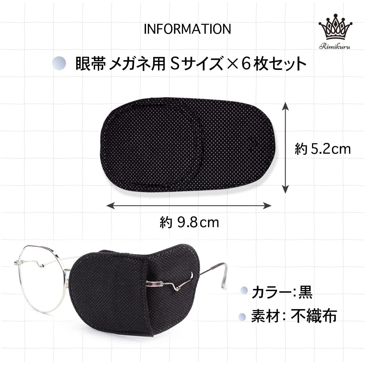 Rimikuru 眼帯 眼鏡 メガネ用 6枚/12枚入 斜視 メガネ カバー 右目 左目 アイパッチ 両目 片目眼帯 黒 (Sサイズ, ブラック6枚入)