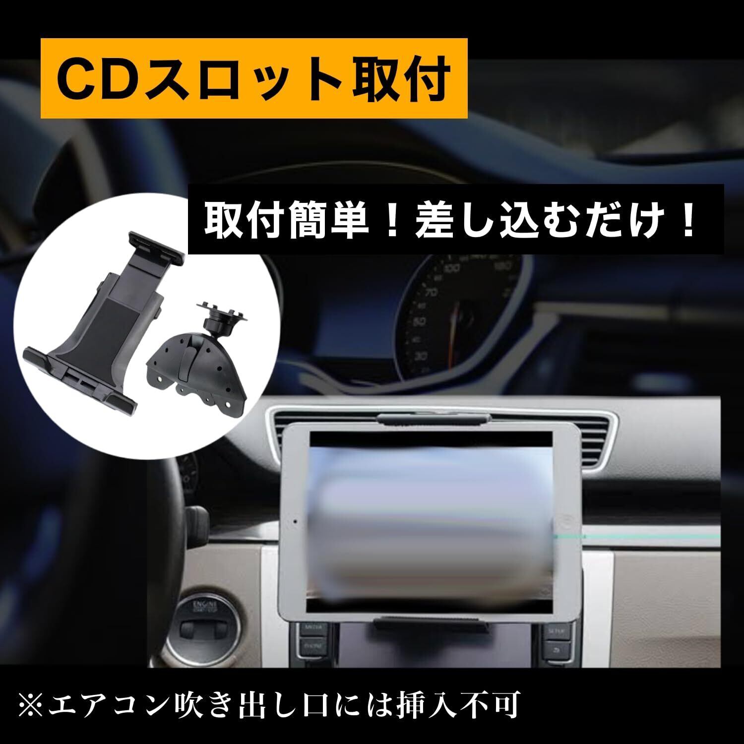 革新的な車載スマホホルダー CD- CDスロットに簡単に取り付け可能なスマホ/タブレット ホルダー 車です。吸盤のような粘着力の低下や揺れることなく、安定した固定をお約束します。
