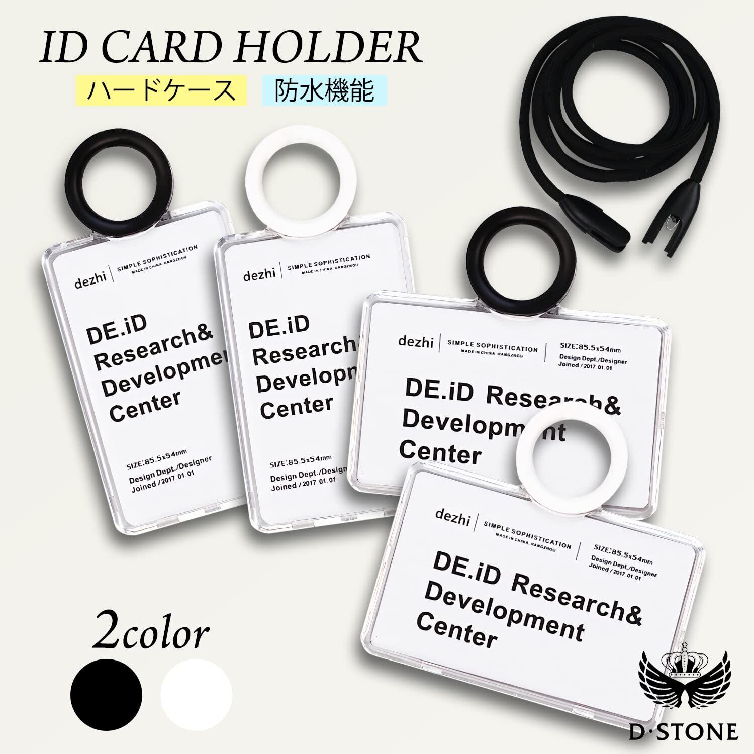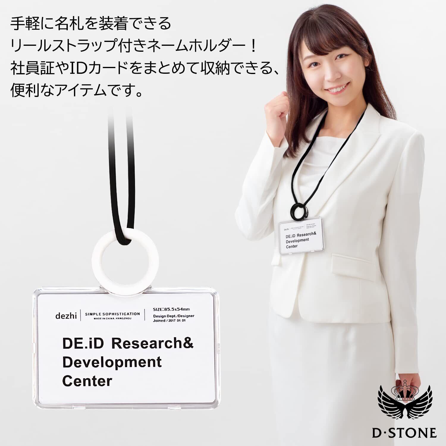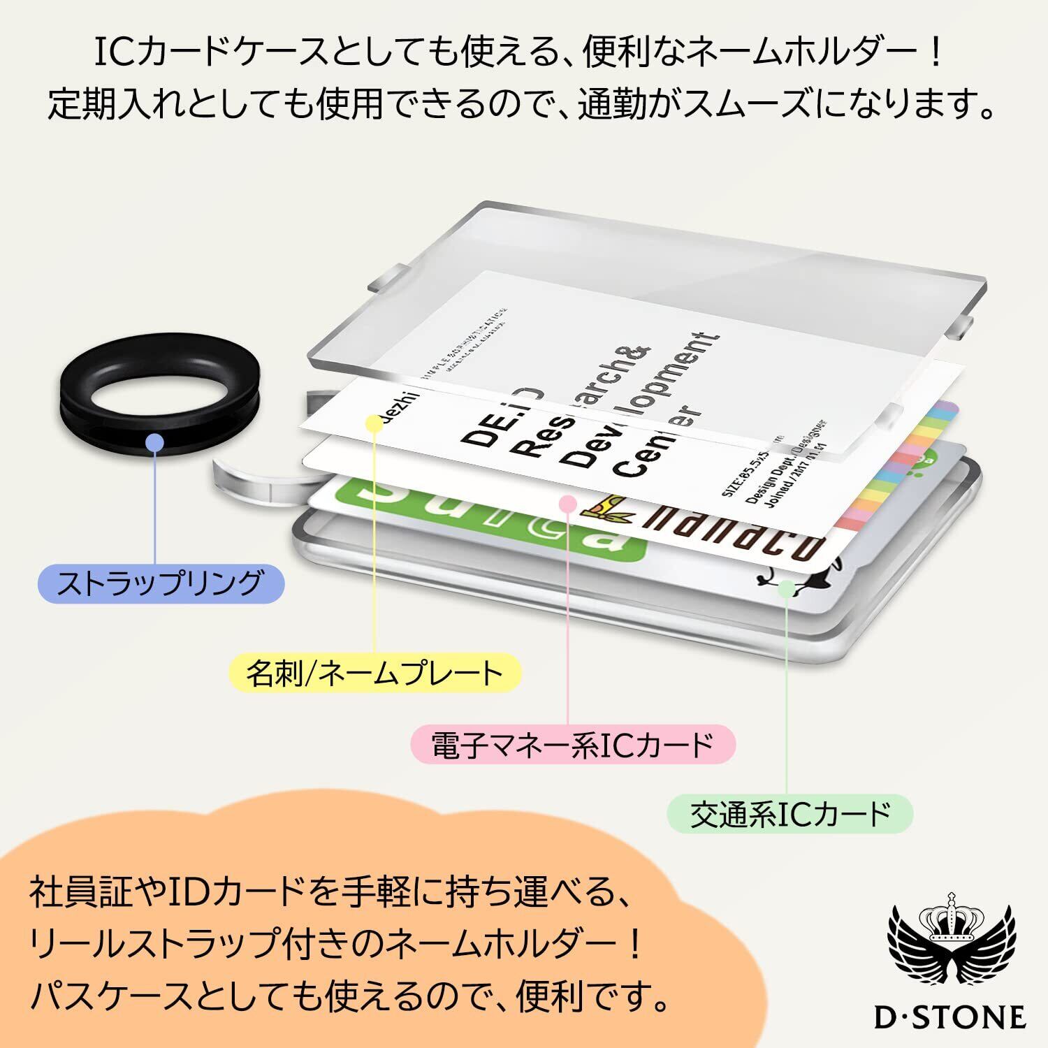 IDカードホルダー ネームホルダー IDカードケース パスケース リール付き D・STONE (白 横)