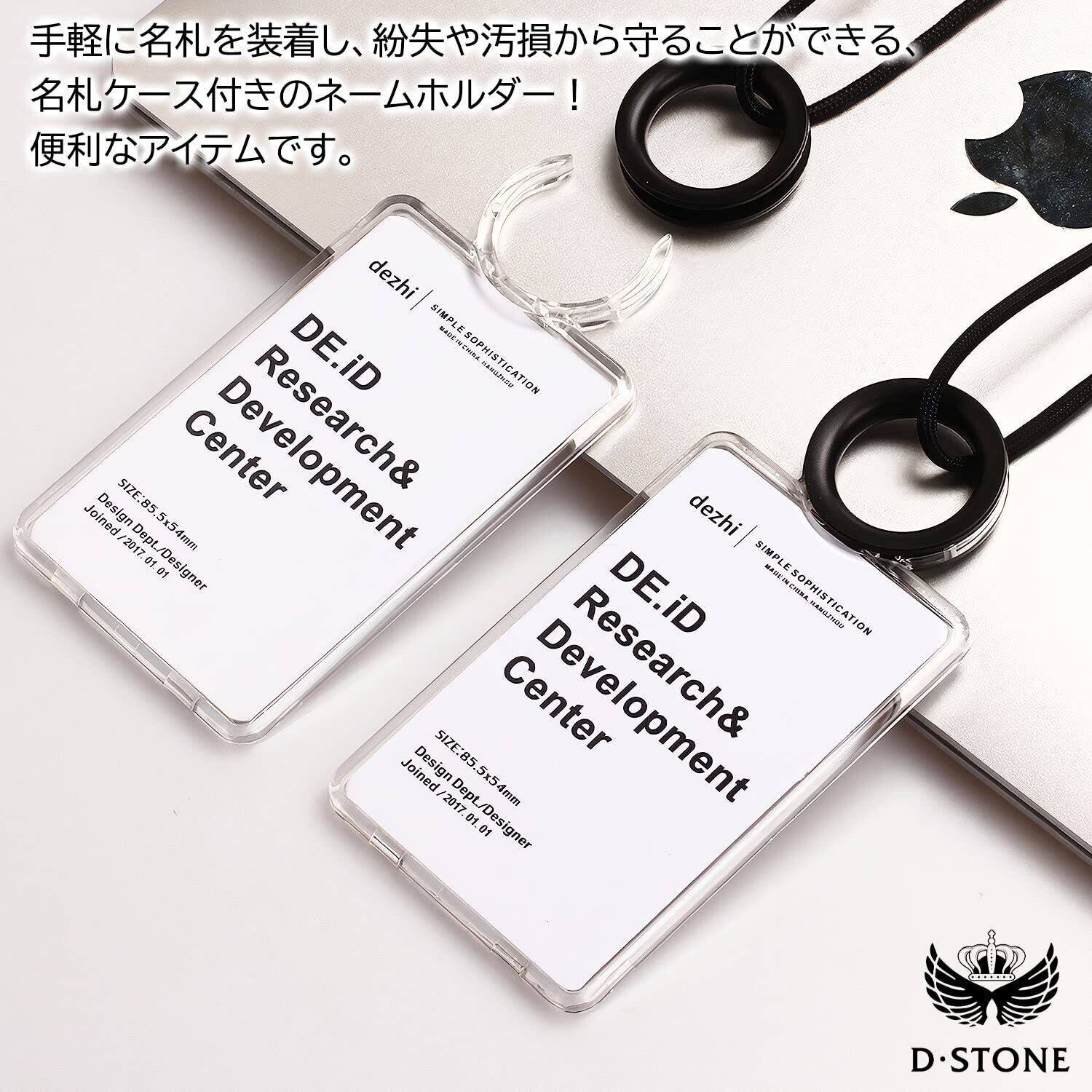 1 手軽に名札を装着できるリールストラップ付きネームホルダー!社員証やIDカードをまとめて収納できる、便利なアイテムです。