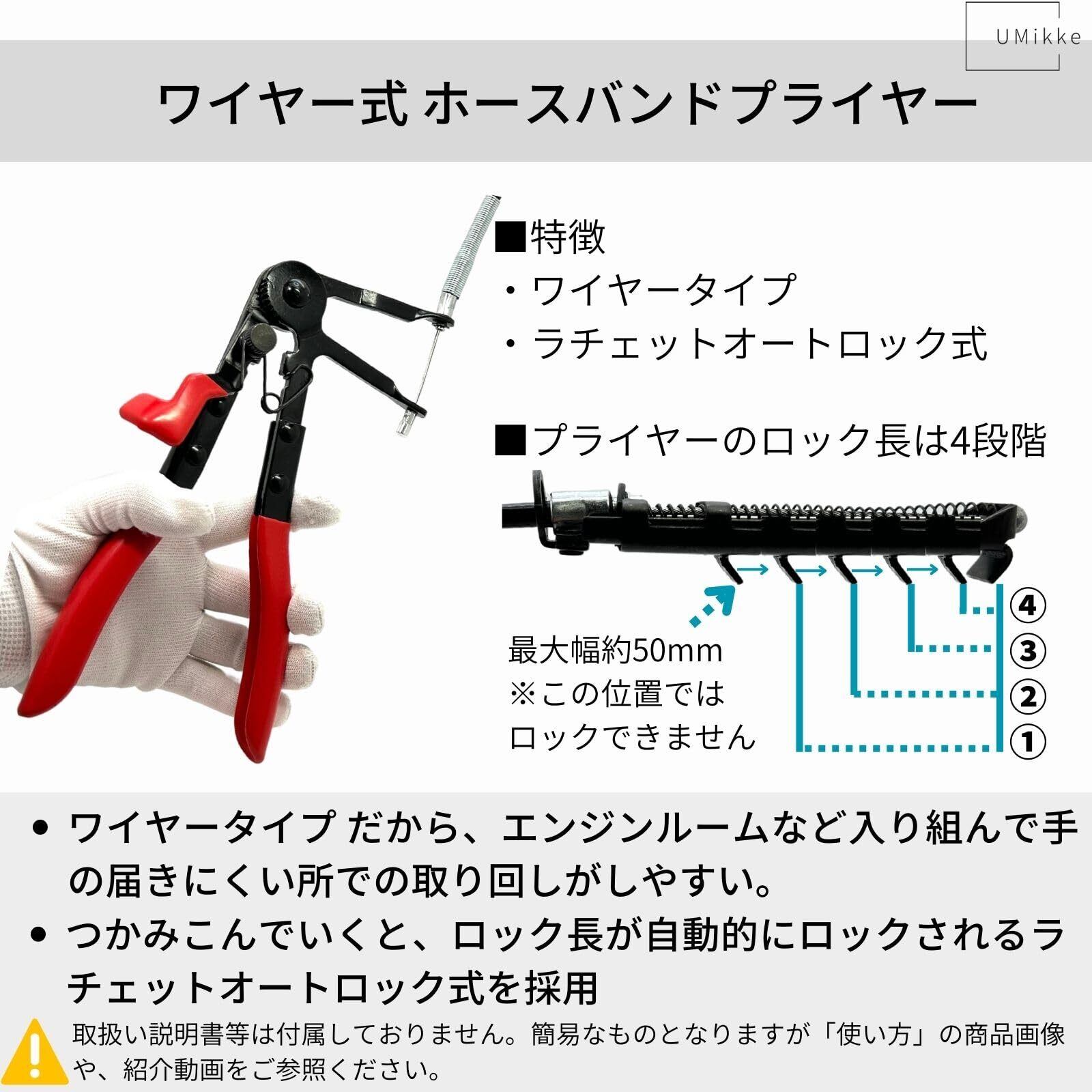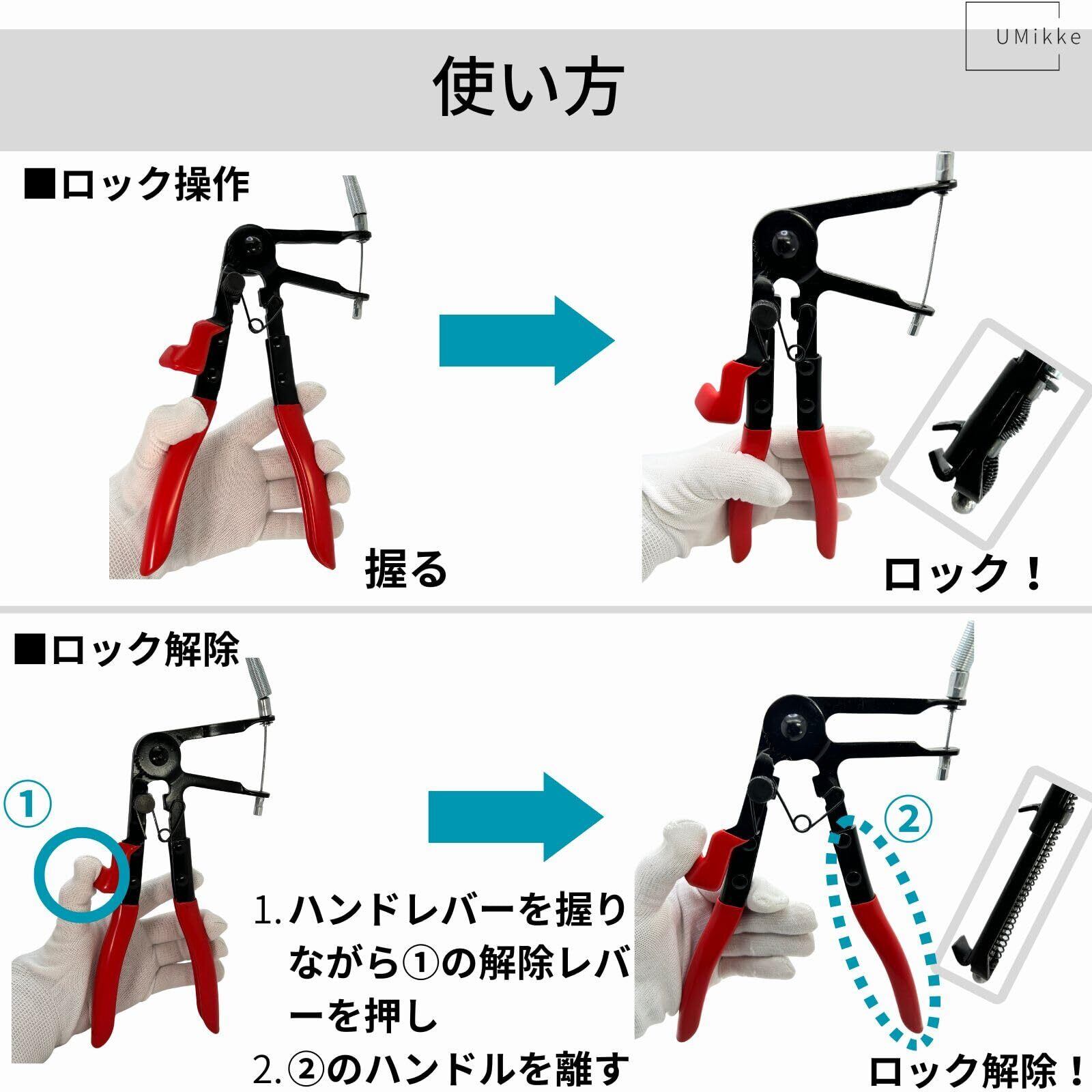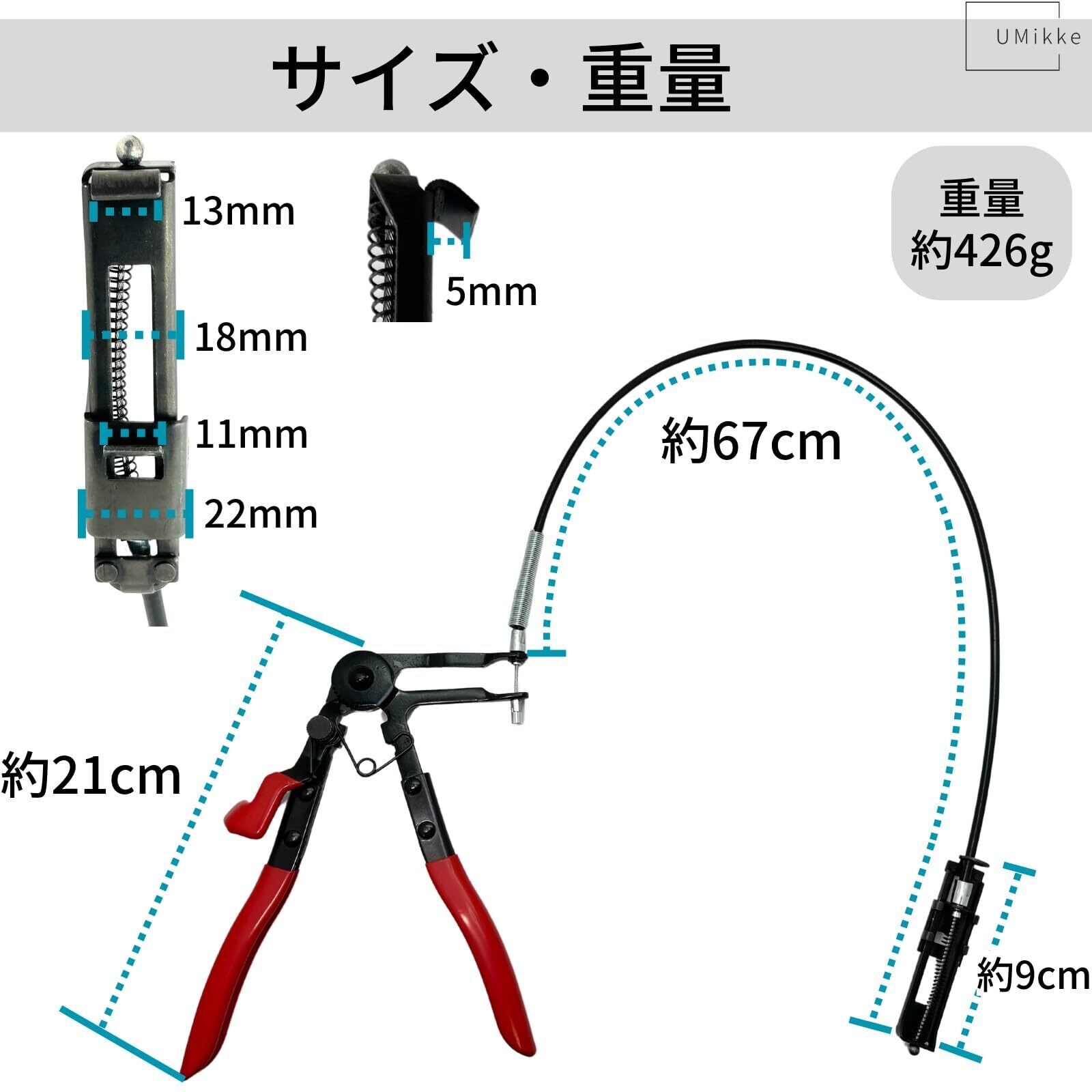 UMikke ホースクランププライヤー ワイヤー式 ホース バンド プライヤー フラット型 ホースリムーバー クランプ 工具 600mm 1個