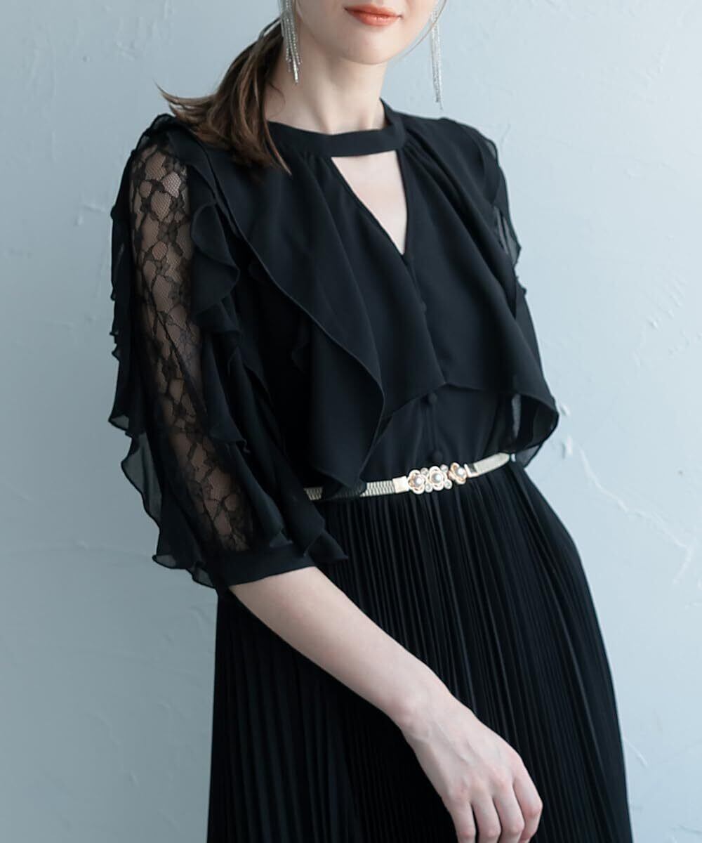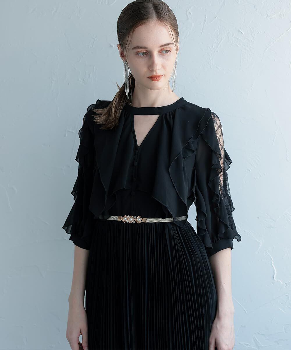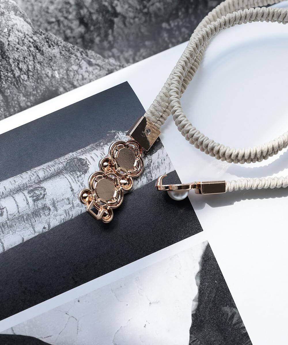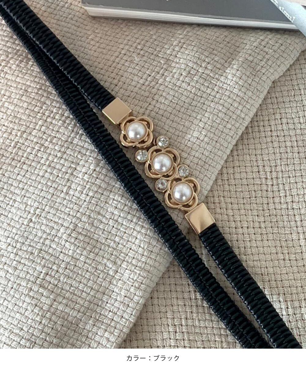 [MORE AUNI] 細 ゴムベルト パーティードレス お呼ばれ パール 結婚式 2次会 1.5次会 ウエストマーク スリムベルト レディース