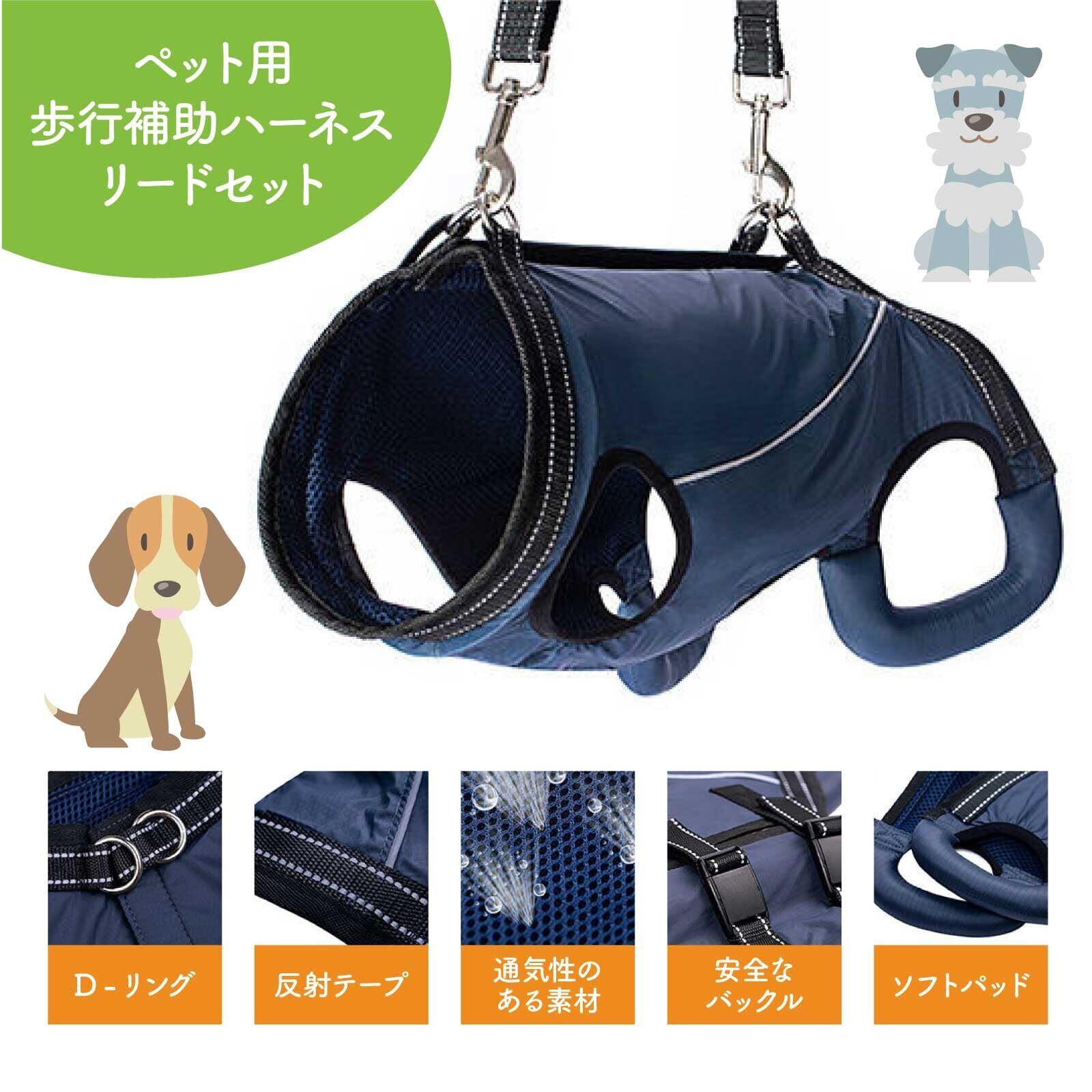 Funriche 犬 ハーネス リード セット 歩行補助 ペット 用品 服 中型犬 小型犬 介護 服 脚 障害 リハビリ 散歩 胴輪 簡単脱着(ブルー S)