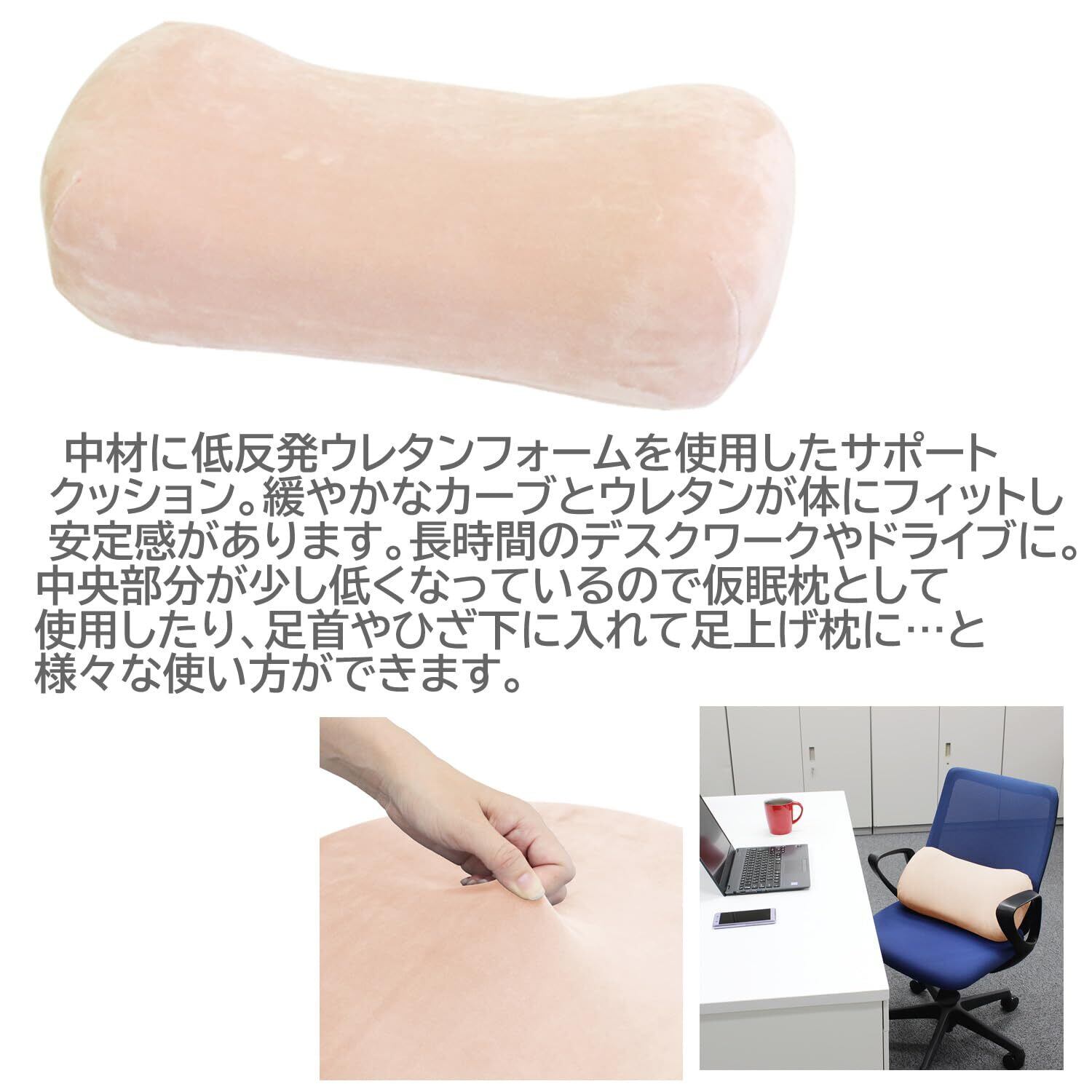 中材に低反発ウレタンフォームを使用したサポートクッション。緩やかなカーブとウレタンが体にフィットし安定感があります。