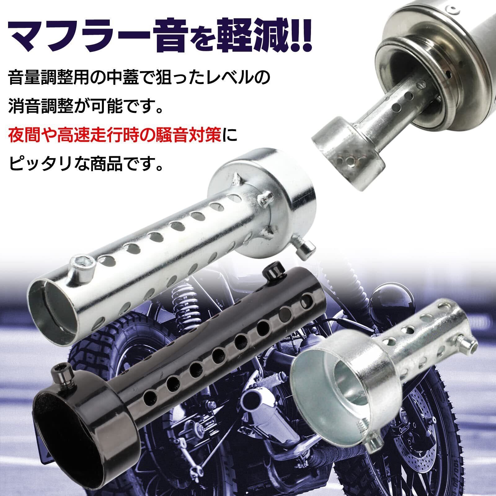 【商品概要】バイクの排気音量を下げる汎用タイプのインナーサイレンサー。音量調整用の中蓋が付属しているため、狙ったレベルでの消音調整が可能です。マフラーサイズが合えば、ネイキッド、アメリカン、クラシック、旧車など様々な車種のオートバイに装着可能です。マフラーに取り付け用のボルトの穴があればボルトオンで簡単に装着できます(※取付穴がない場合はマフラー側に穴あけ加工などが必要です)。