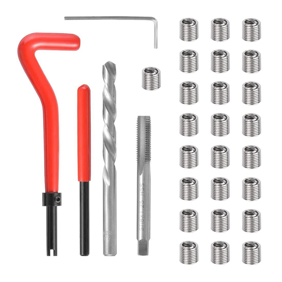 【人気商品】SeonFook ネジ山修復セット ネジ穴 修復 ステンレス鋼 M8x1.25mm スレッドスリーブ 雌ねじ再生補強 修復ツール ハードウェアの付属品 ネジ穴修正セット 30個セット | gsmshop