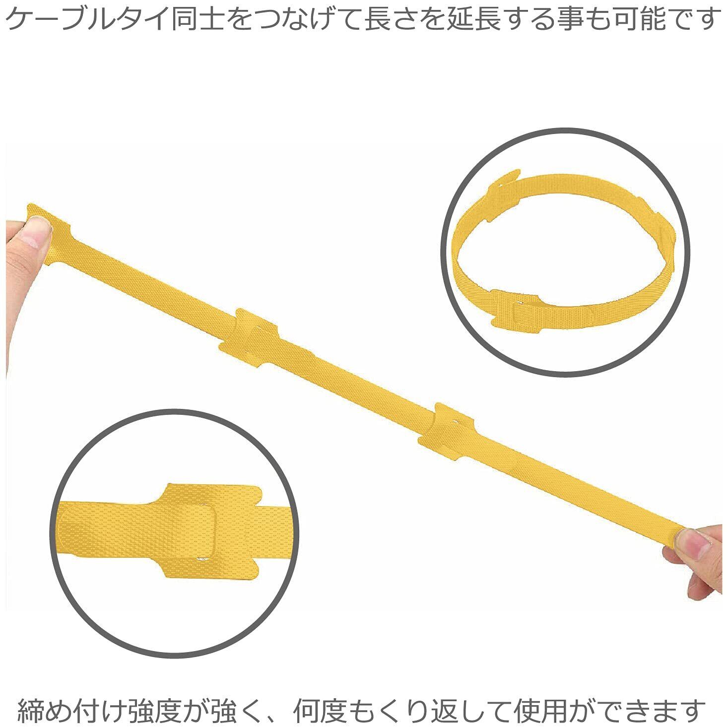 ColorfylCoco (カラフィルココ) 面ファスナー式 ケーブルタイ 長さ 15cm (150mm) × 30本セット ナイロン製 ケーブルバンド 結束バンド 配線整理 イエロー 黄色