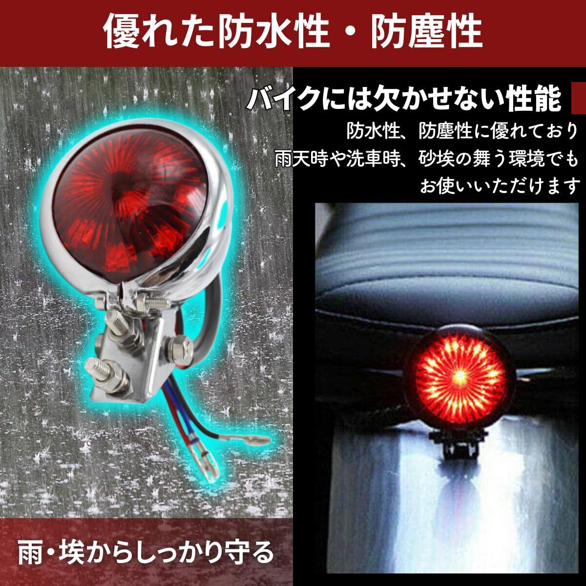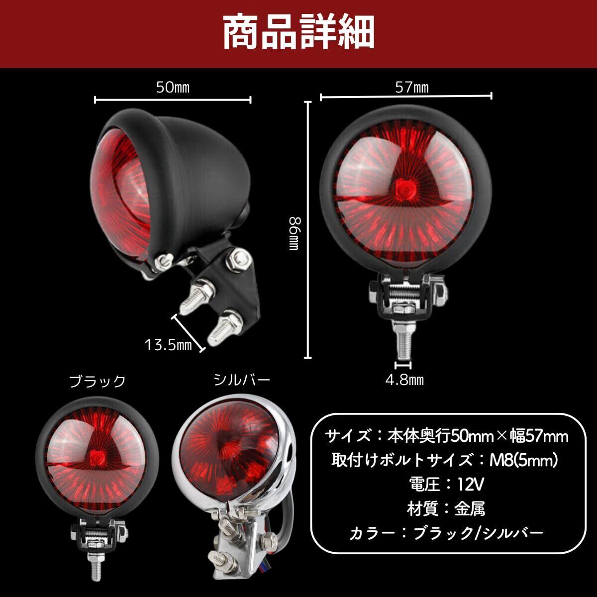 【商品仕様】バイク テールライト 素材:メタルメッキ+LEDレンズカラーレッド 動作電圧:DC12V 機能:スモール+ブレーキ 配線法:3線接続
