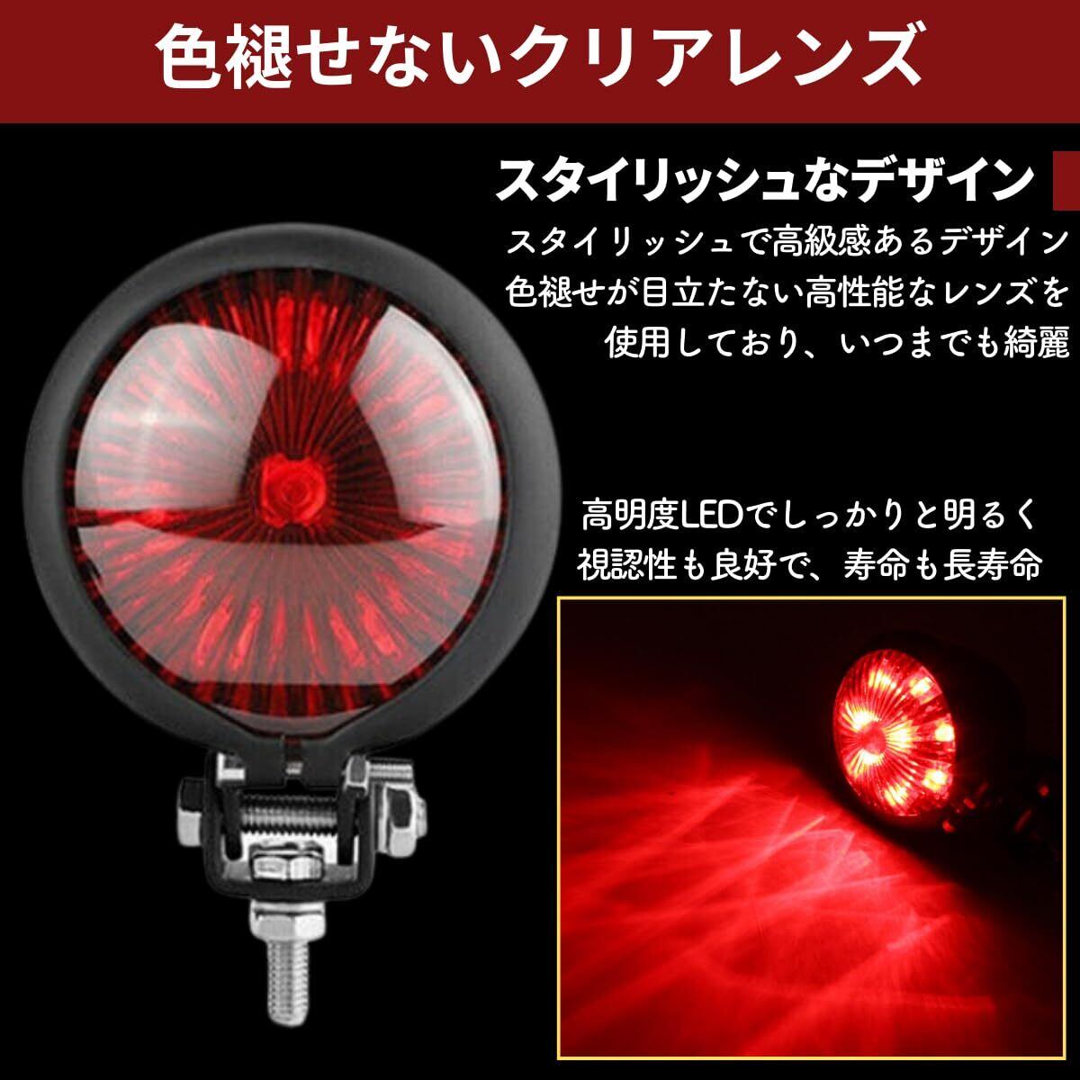 azumafy バイク テールランプ テールライト リア LED ブレーキランプ 汎用 丸型 赤 小型 アメリカン ストップランプ 12V ドレスアップ カスタム レッド (シルバー)