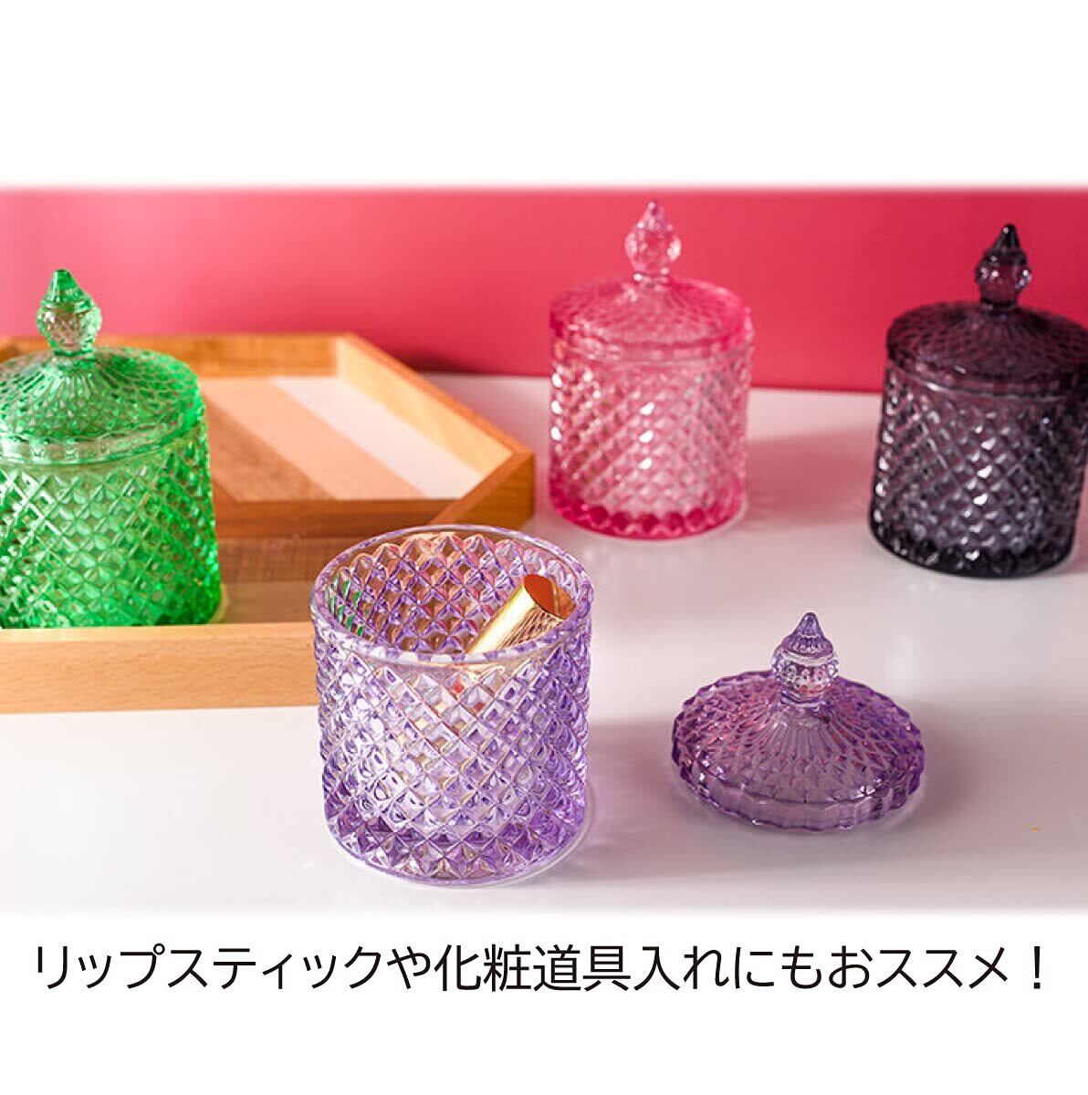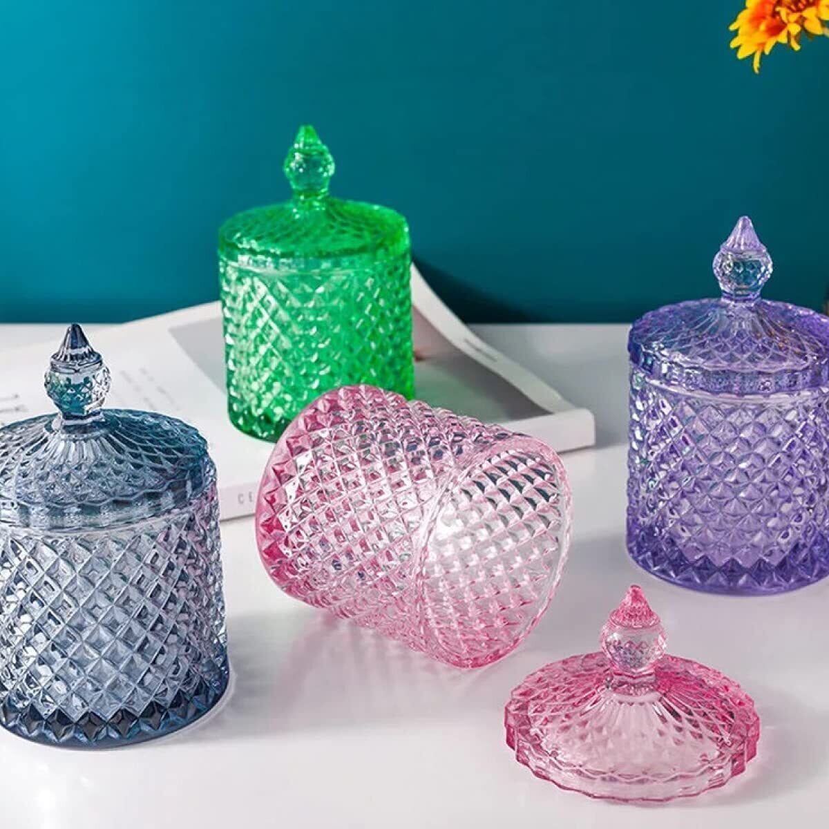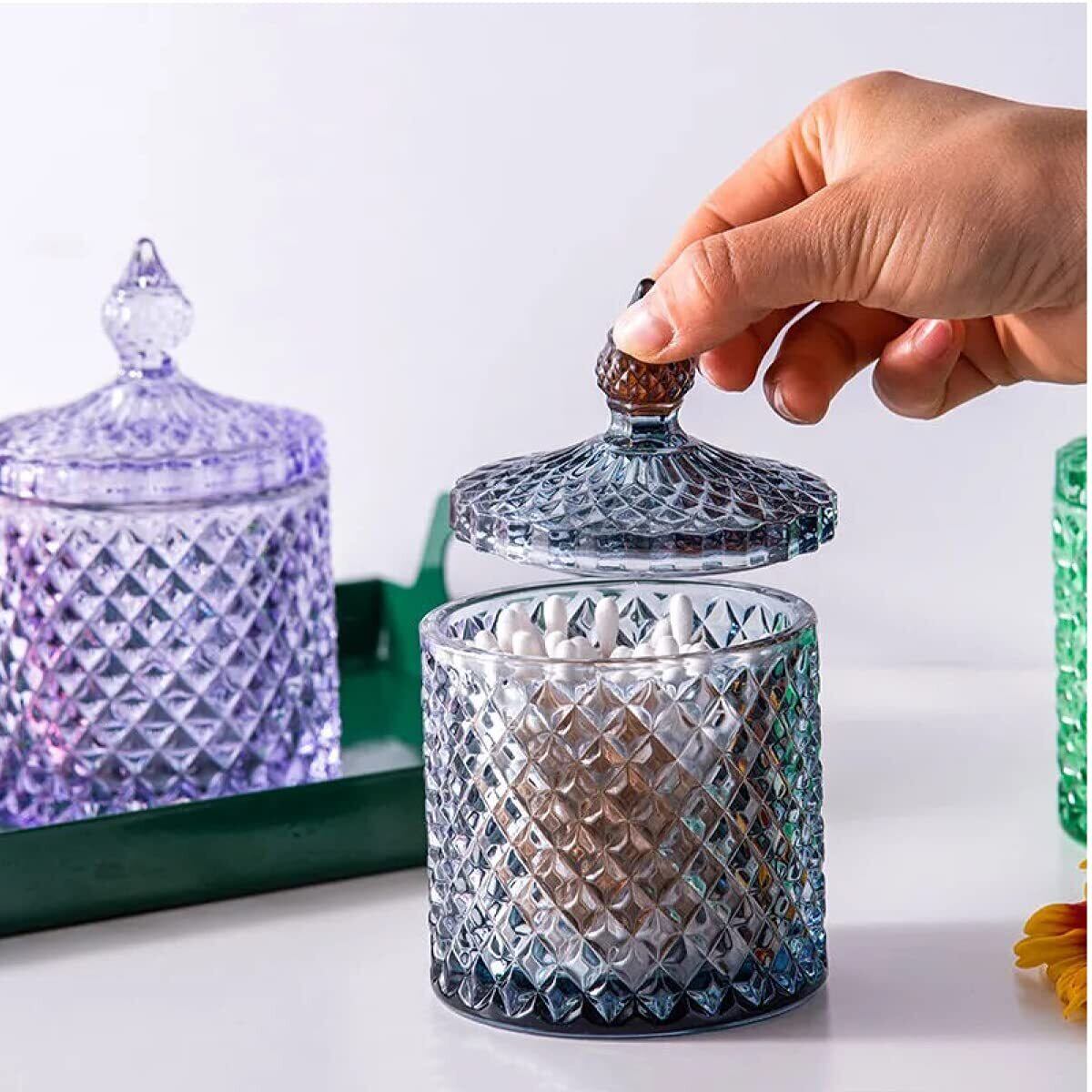 TK.Felly ガラス 小物入れ ビン 蓋付き 卓上 おしゃれ コットン 容器 綿棒 楊枝 カラフル (グリーン)