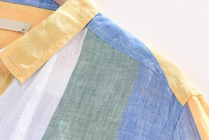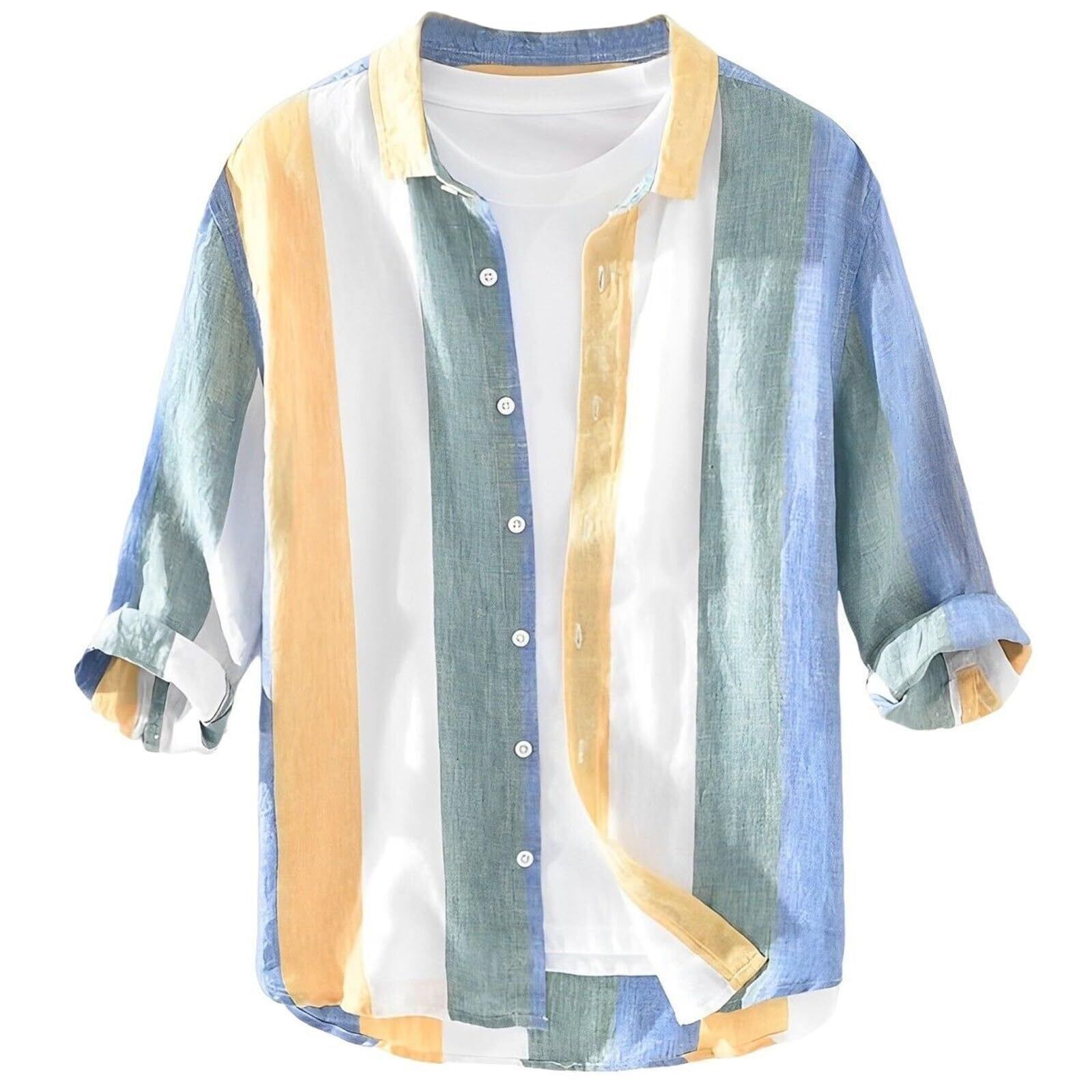 [aspersio] [アスペルシオ] 七分袖 ストライプシャツ 襟付き ボタンダウン ストリート系 オシャレ トップス メンズ