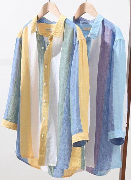 ◆淡い色合いを基調にした御洒落なストライプシャツ ◆清潔感をUPする爽やかカラーは女子ウケも抜群