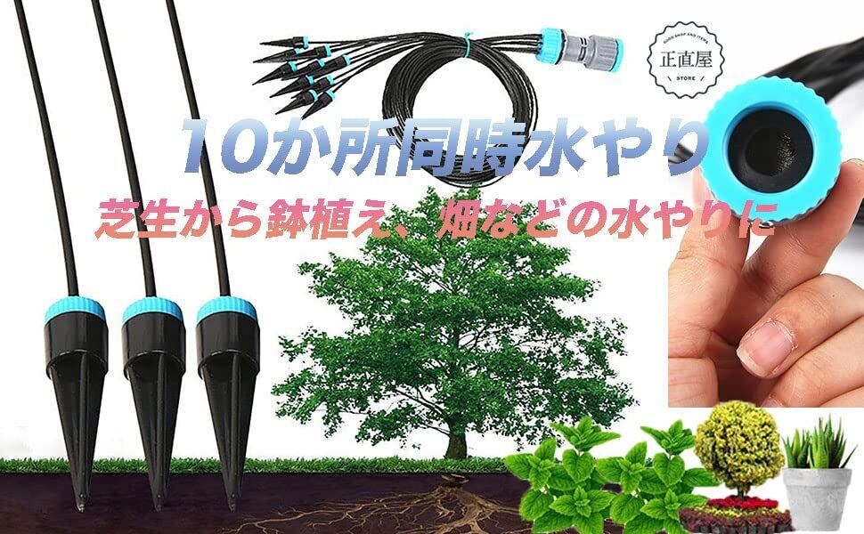 水やり 自動給水 園芸給水 点滴ノズル 10か所同時水やり 散水 鉢・プランター用 ガーデニング 家庭園芸 園芸散水 (ノズル・ホース)