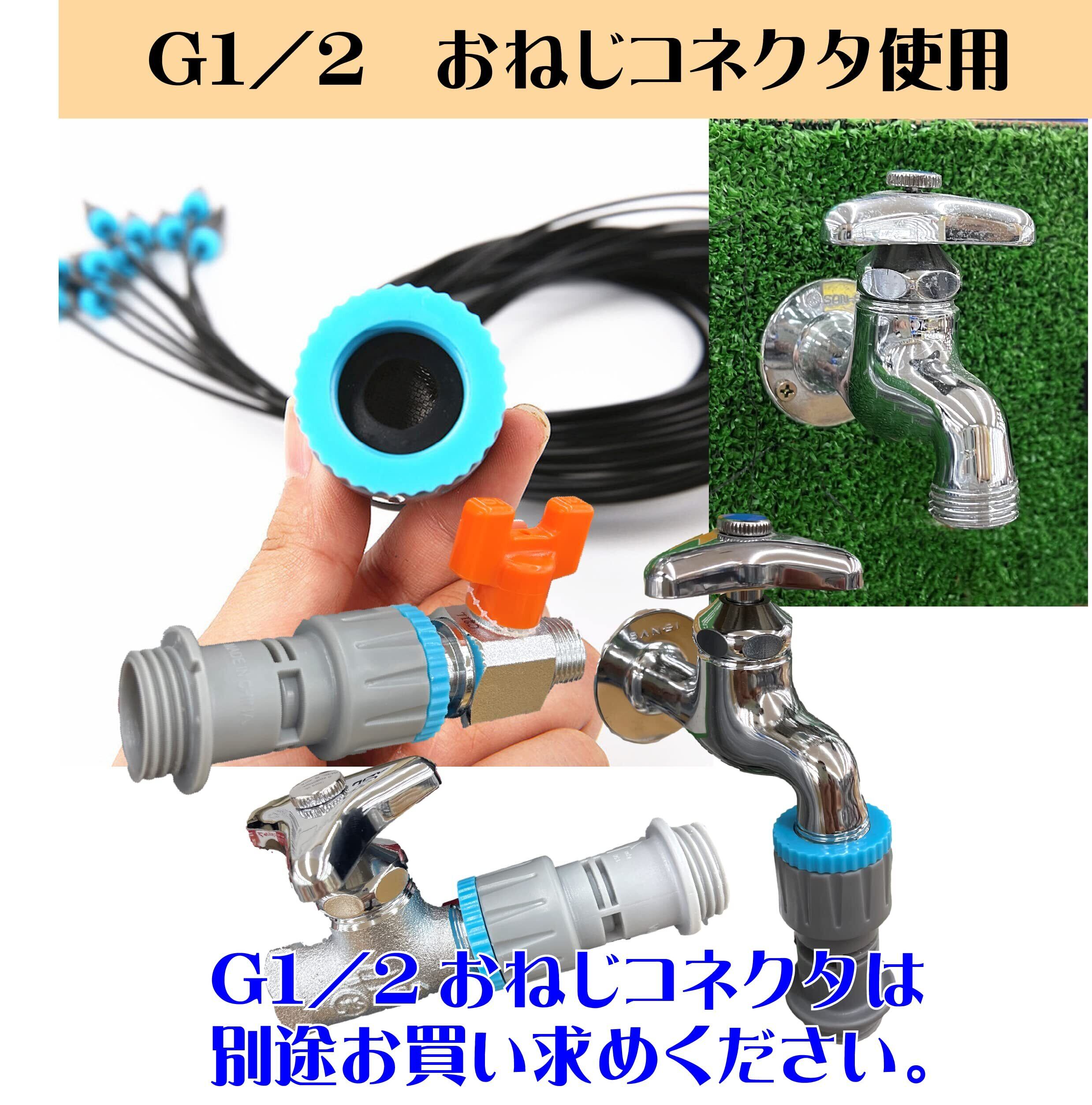 スプリンクラーヘッドは簡単にクリーニングできるようにティージョイントから取り外し可能です。 接続にはG1/2のおねじコネクターが必要です。別途ホームセンター等でお買い求めください。