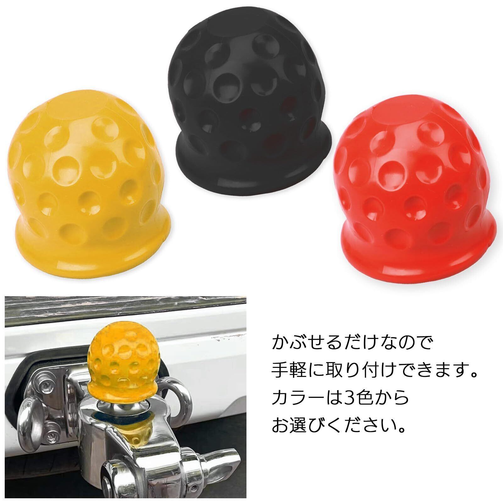ヒッチボールカバーはポップなカラーで、後続車両や歩行者に対する視認性向上にも役立ちます。レッド、ブラック、イエローの3色があり、サイズについては画像をご確認ください。