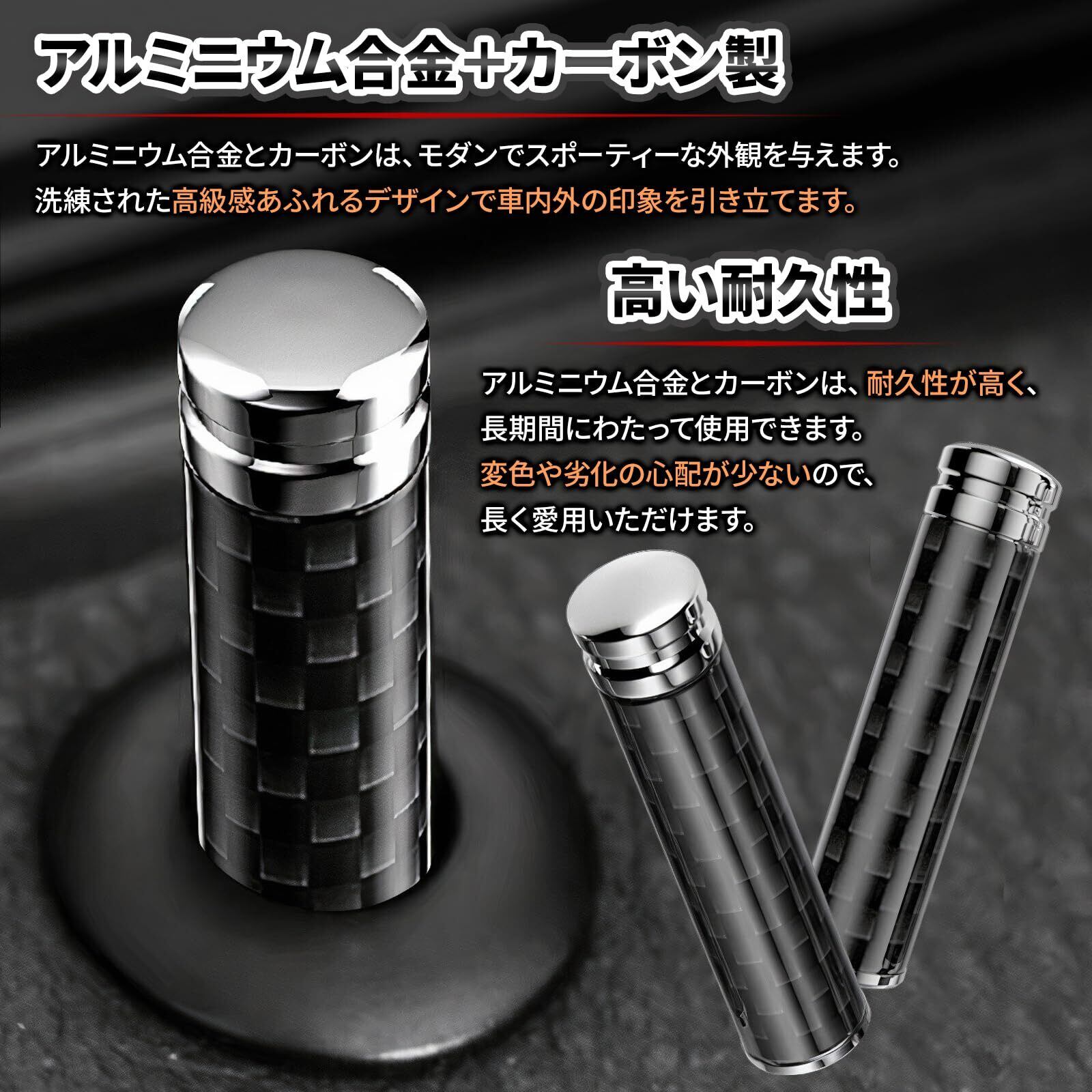 【スタイリッシュなデザイン】 アルミニウム合金とカーボンの組み合わせは、モダンでスポーティーな外観を与えます。扉の上部に取り付けるつまみは、洗練された高級感あふれるデザインで車内外の印象を引き立てます。
