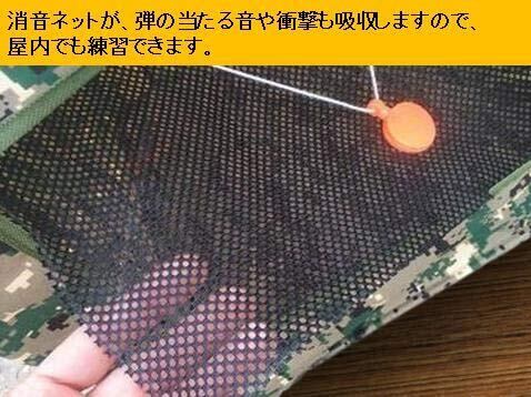 消音ネットが付いていますので、弾の当たる音や衝撃も吸収します。そのため、屋内でも気兼ねなくシューティングの練習をすることができます。