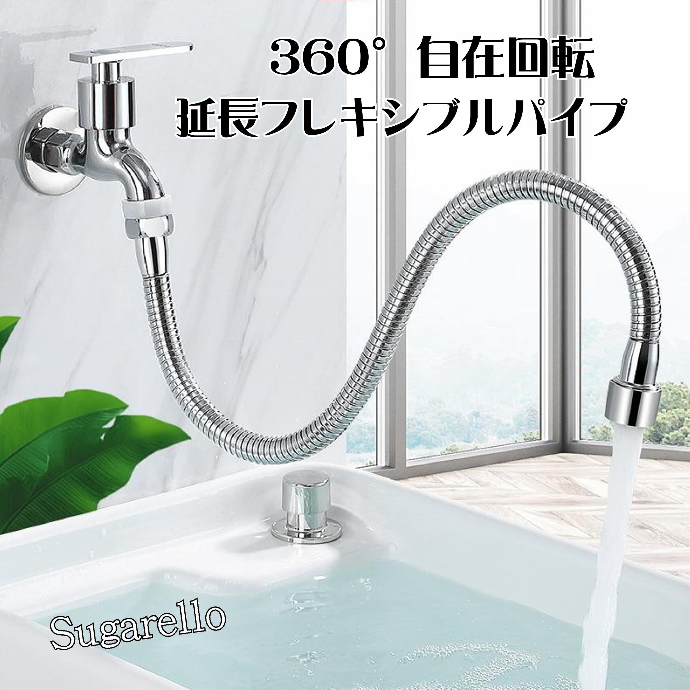 自由に曲げ伸ばしできる、蛇口延長フレキシブルパイプです。流し台、洗面台、洗濯流し台、浴室、外部水栓、等々水道利用の幅が広がります。