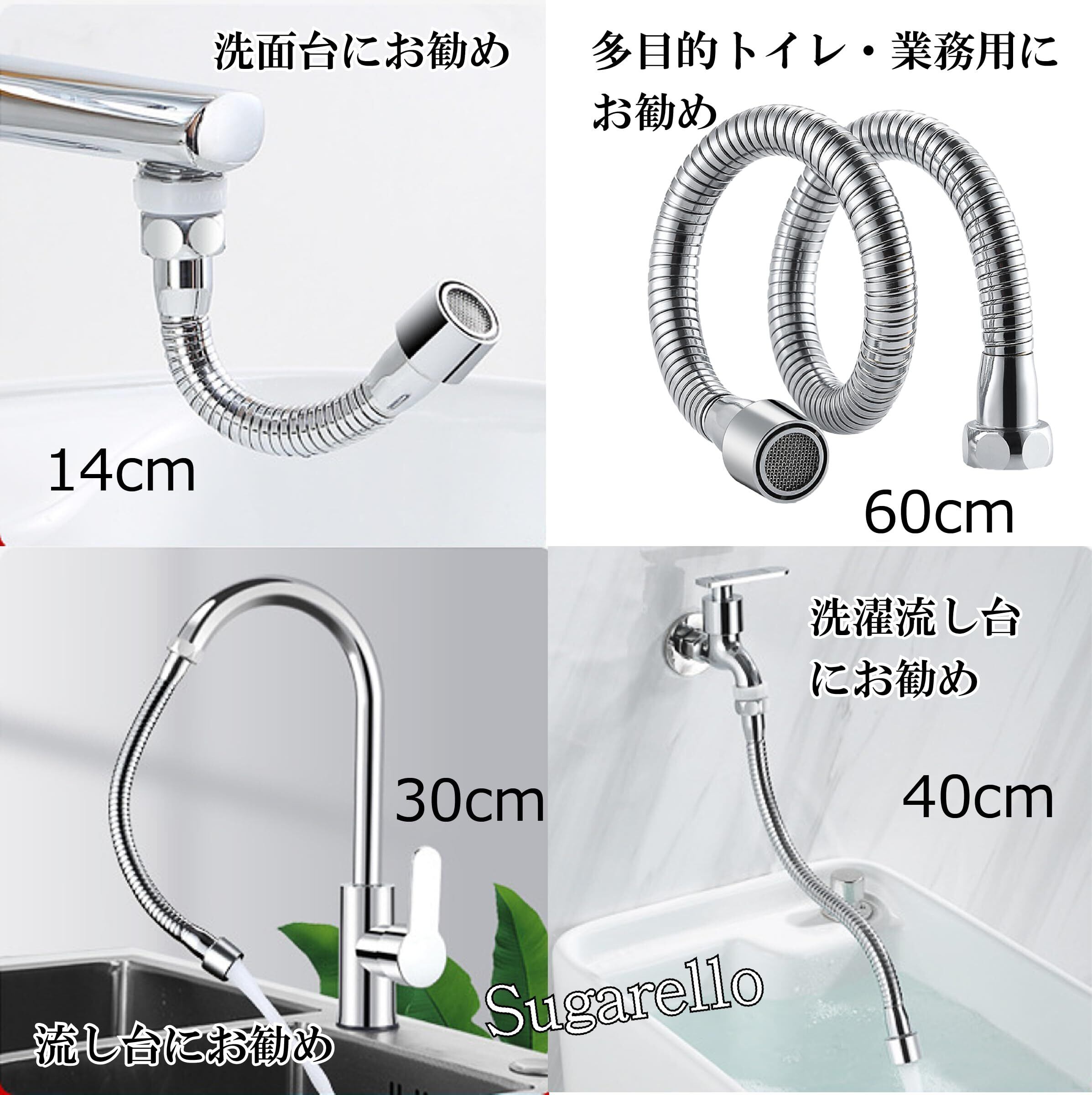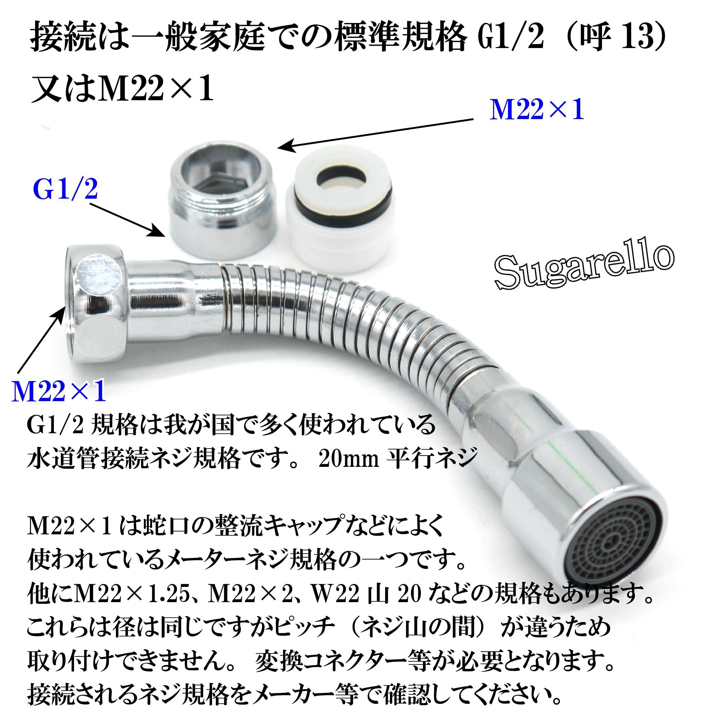 Sugarello 蛇口 シャワー キッチン用水栓パーツ 360度回転 フレキシブルパイプ 延長パイプ 節水30% 水道 自在パイプ 取付簡単 G1/2 呼13 (14㎝)