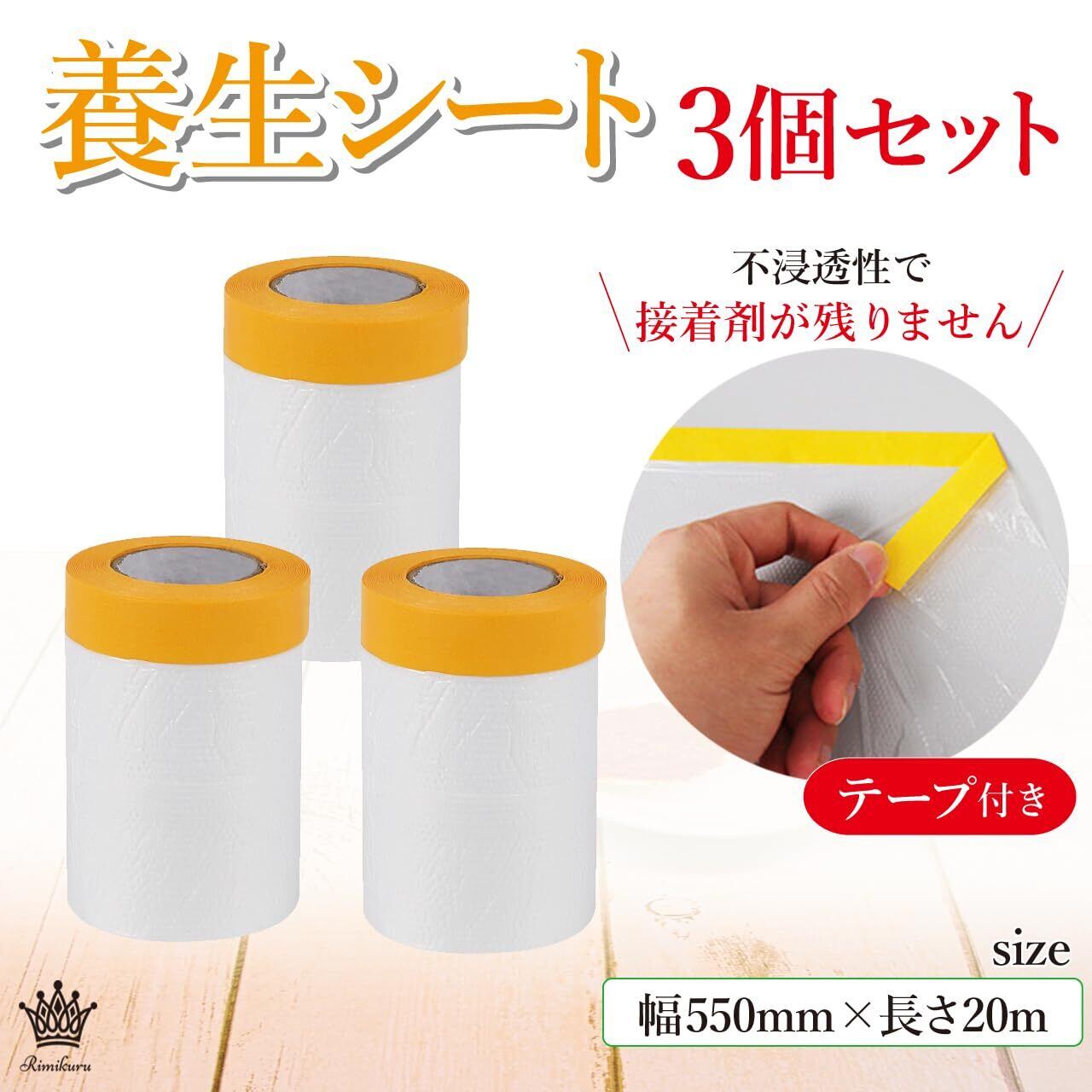 Rimikuru 養生シート テープ付き 3個セット ロール 車 塗装 壁 養生テープ 養生 マスキング テープ ビニール (幅550mm×長さ20m)