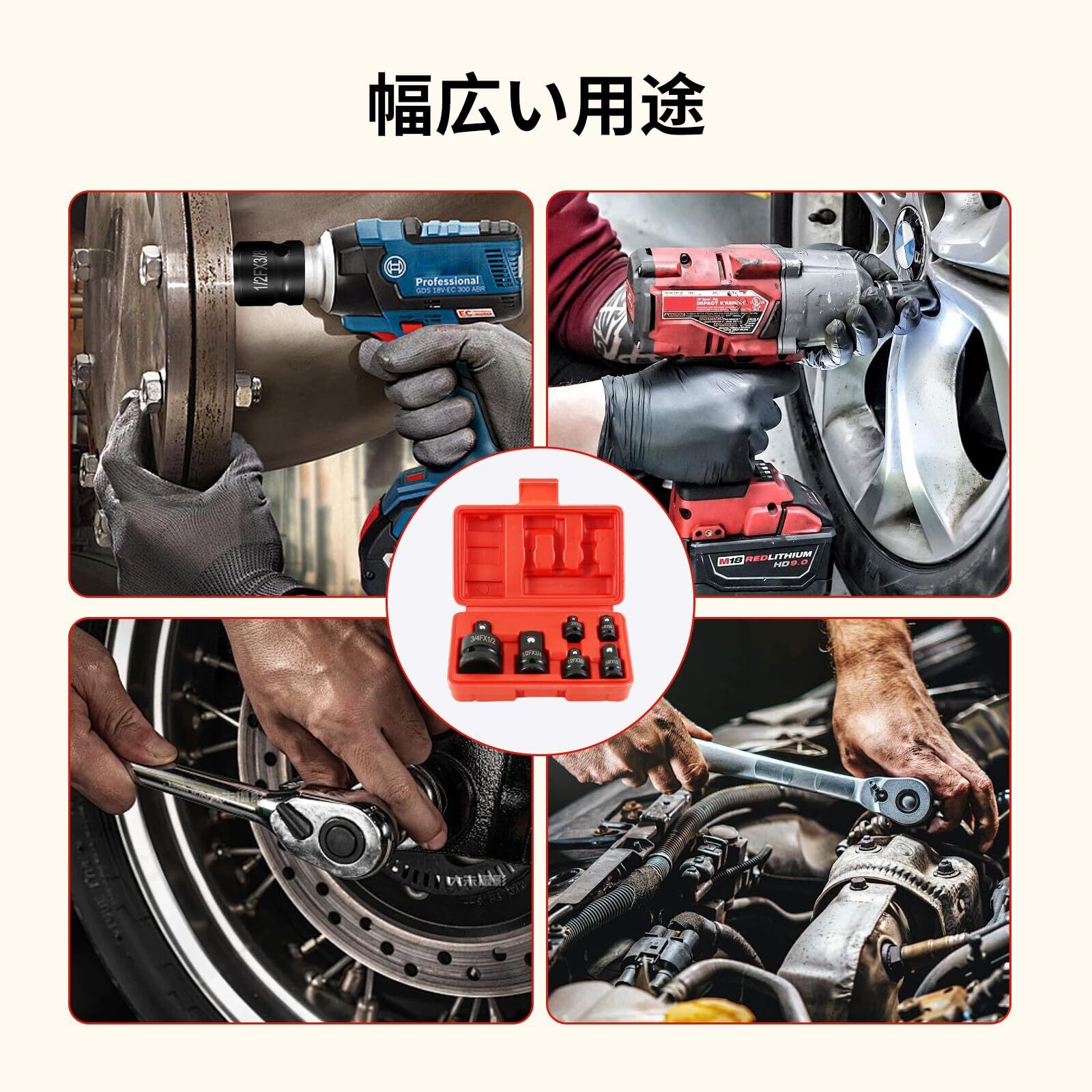 【優れる素材】このソケットアダプターセットは優れるクロムモリブデン鋼に作られており、高い耐久性が備え、錆びにくく、壊れにくく、高負荷、高トルクの作業にも問題なく使用いただけます。