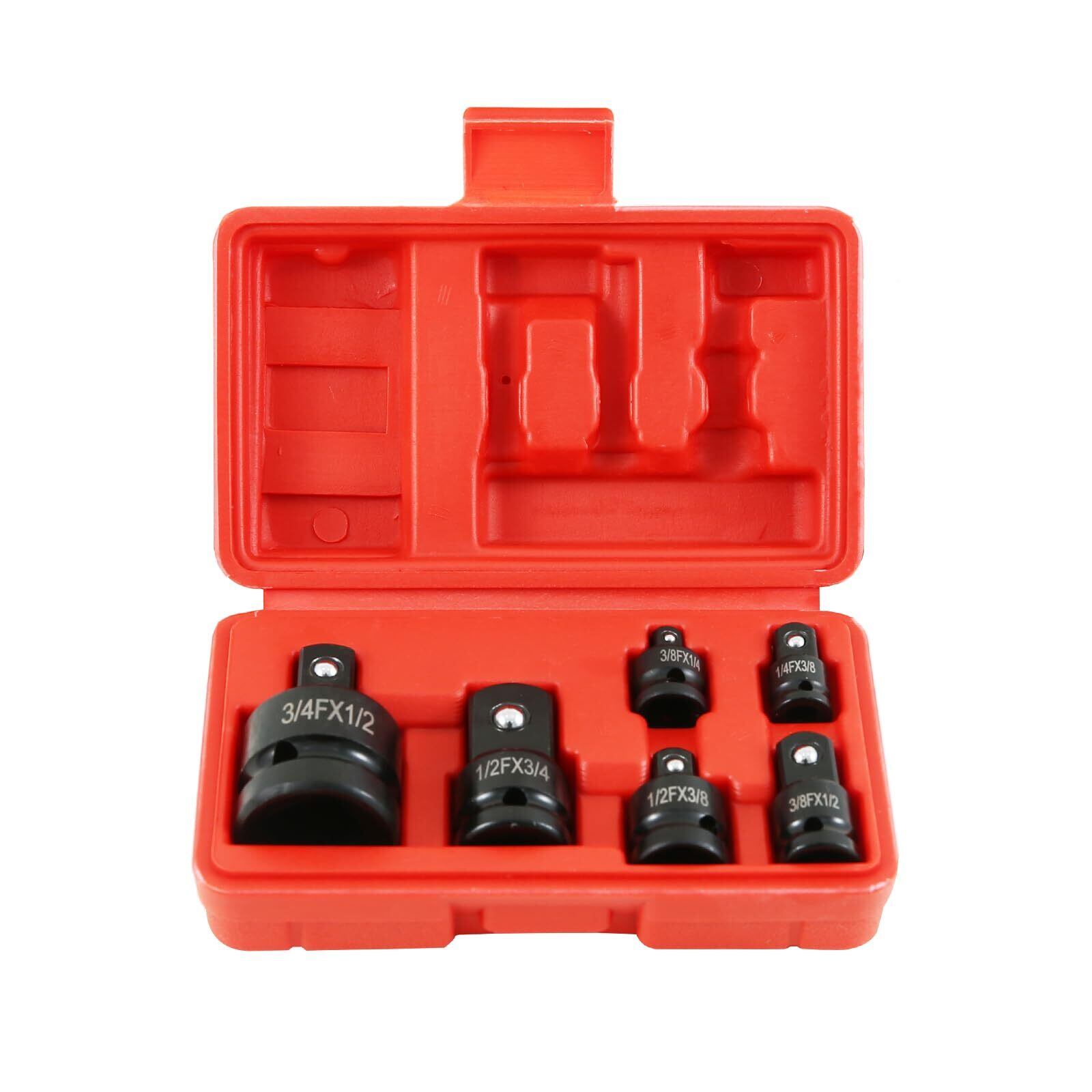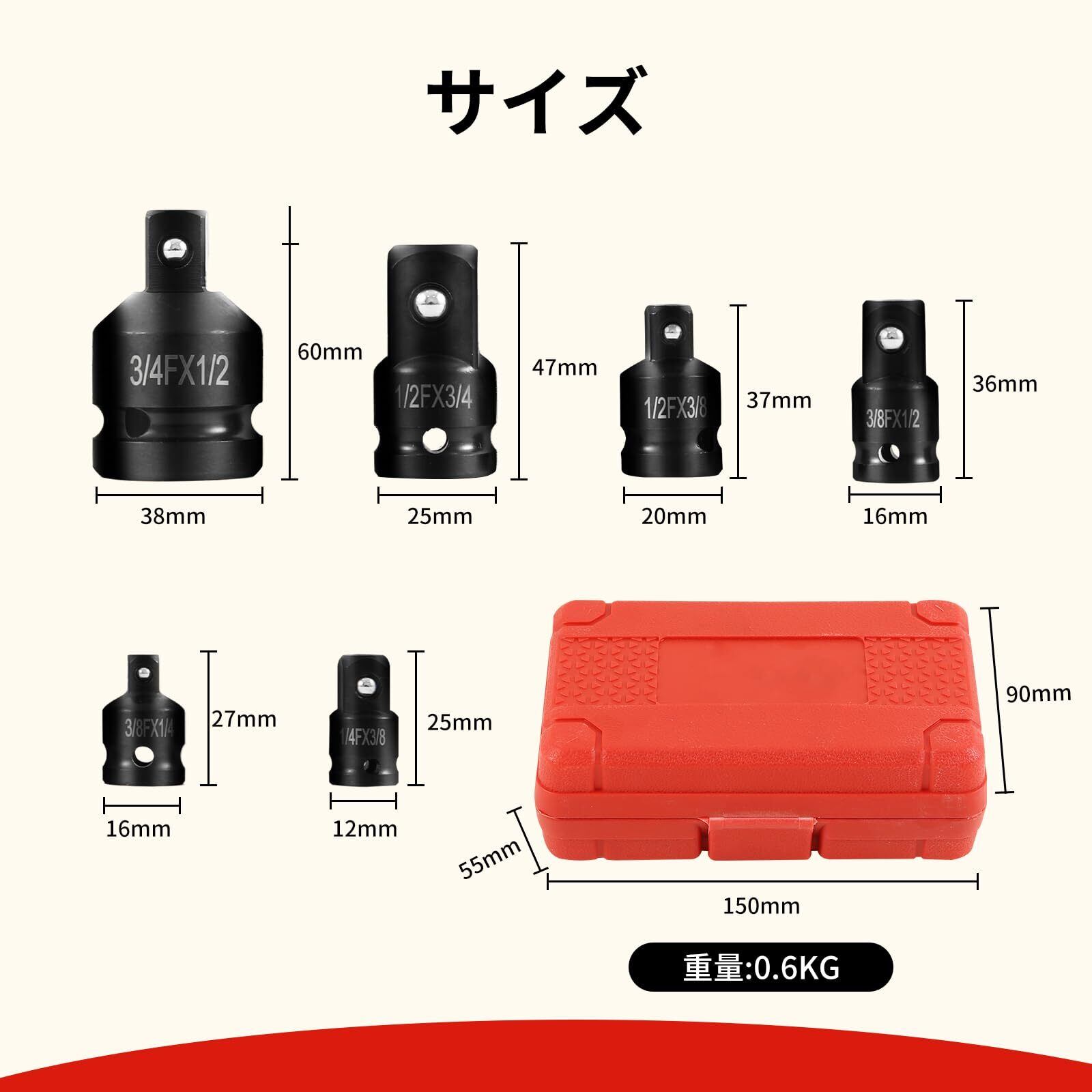 6本セット ソケット変換アダプター インパクトレンチセット 差込角変換ソケット インパクト レンチ 対応 収納ケース付き 1/4 3/8 1/2 3/4 インチ ブラック
