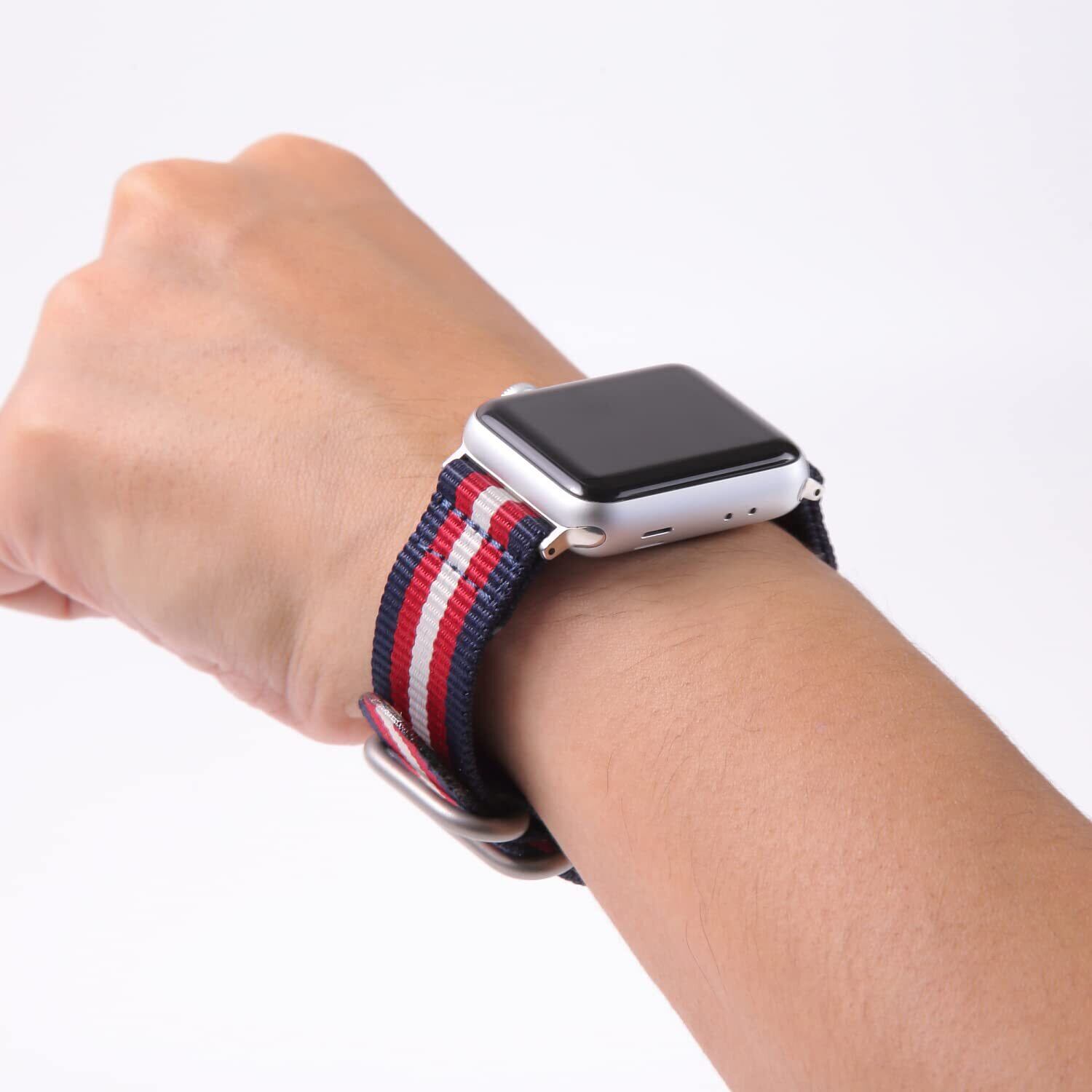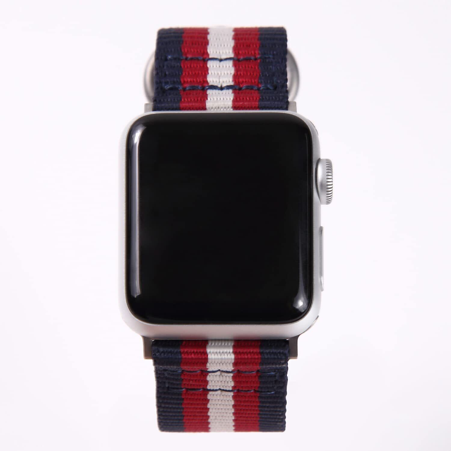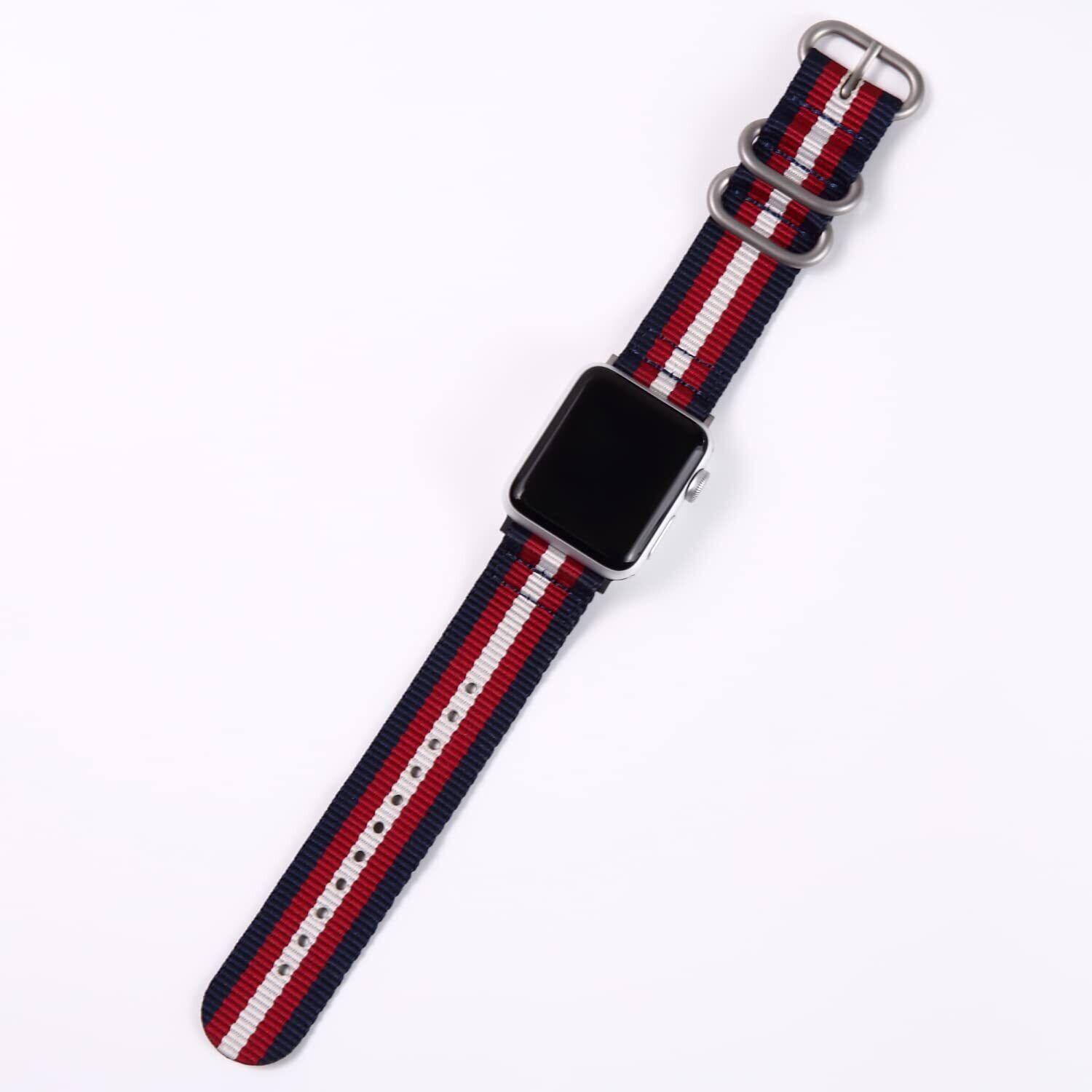 【2022最新】Airself Apple Watch 対応ベルト コンパチブル 時計バンド NATOベルト アップルウォッチ交換ストラップ iWatch 38mm 40mm 41mm 42mm 44mm 45mm Watch Series 6/SE/5/4/3/2/1に対応 (38mm/40mm/41mm, ネイビー×レッド×ホワイト×レッド×ネイビー(銀バックル)) | gsmshop